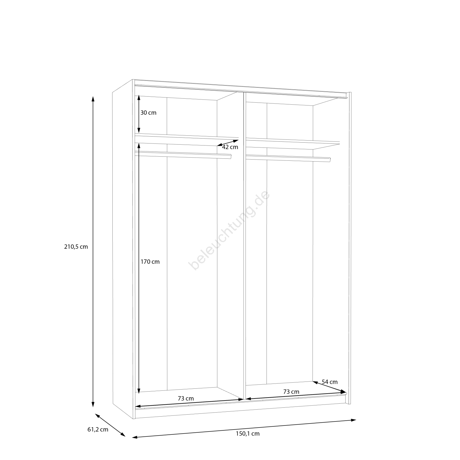 • Kleiderschrank KARO 150x210 cm weiß/Eiche Artisan
