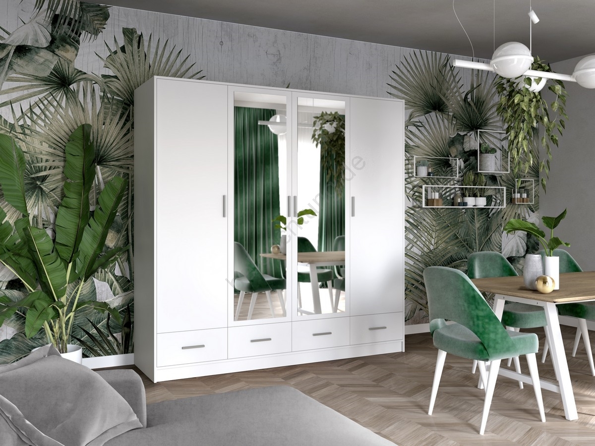 Kleiderschrank mit Spiegel SANNA 200x215 cm Weiß
