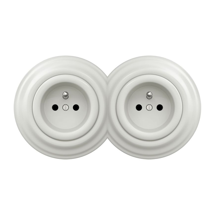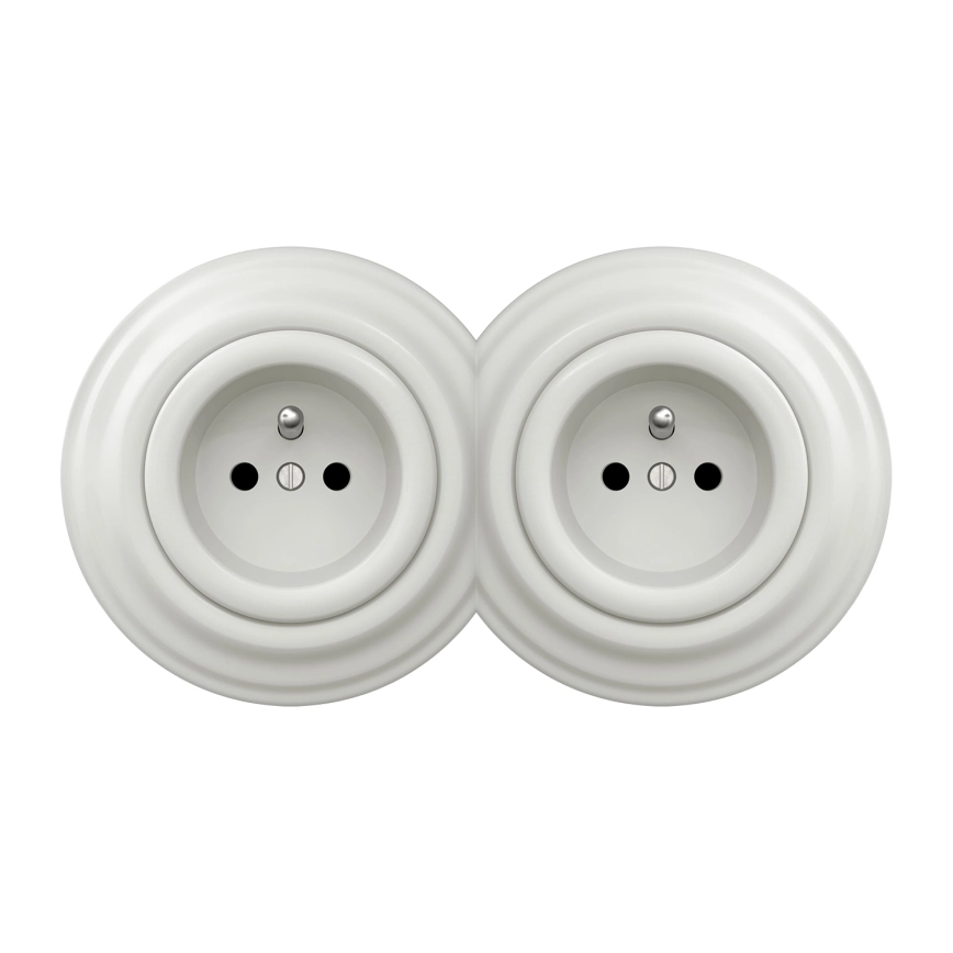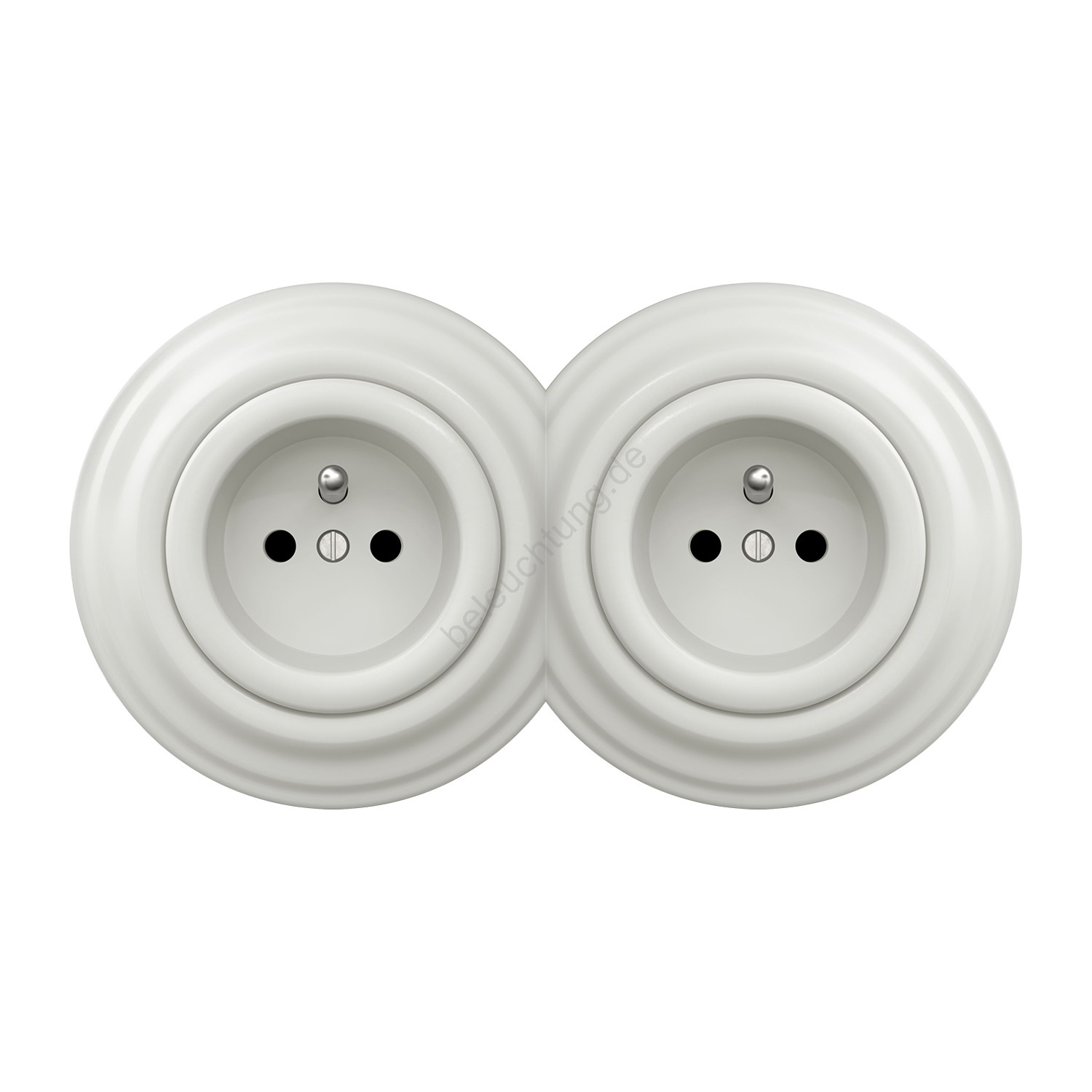 Kliklap - Doppelte Retro-Wandsteckdose mit Rahmen, 230 V, weiß