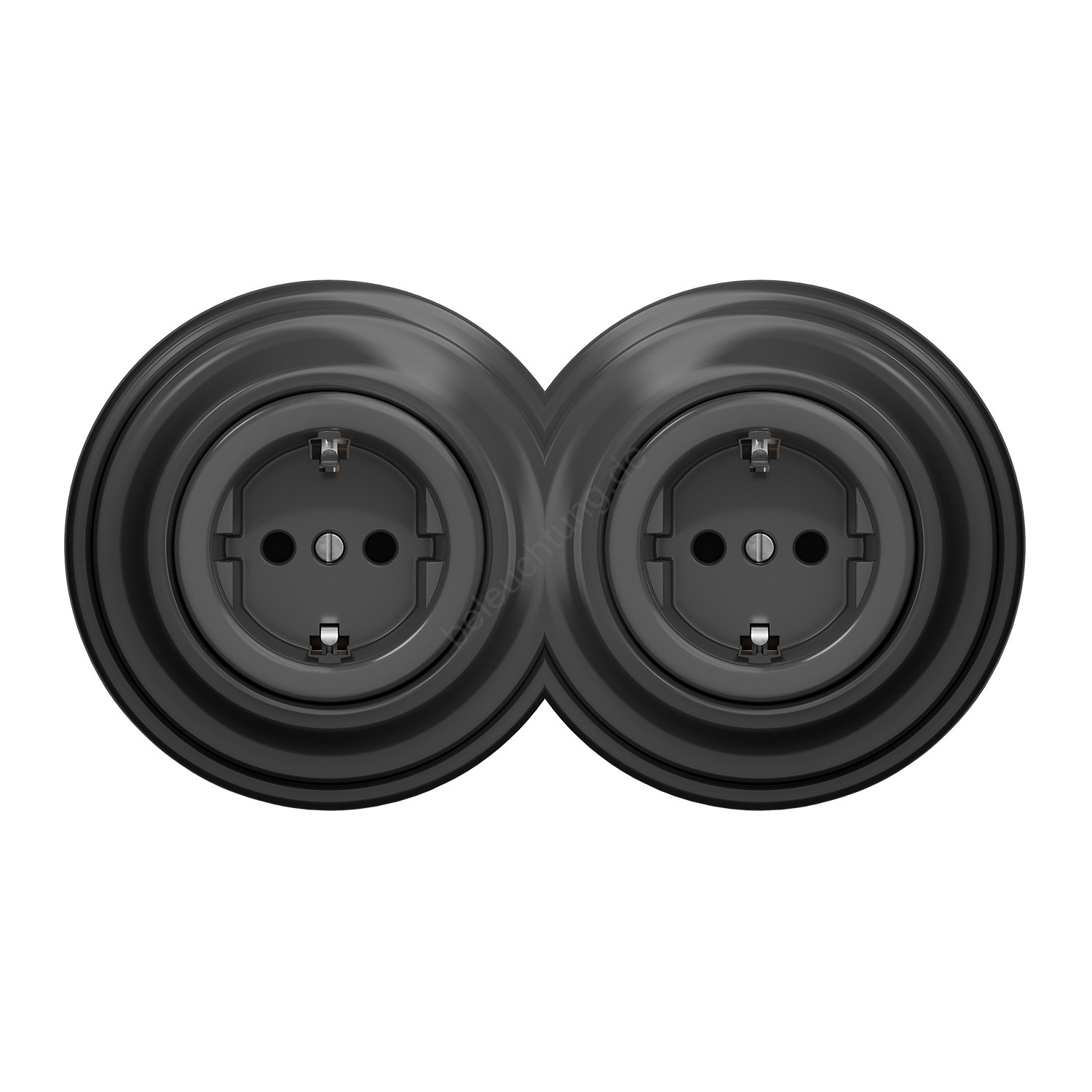 Kliklap - Doppelte Retro-Steckdose mit Rahmen, SCHUKO 230V, Anthrazit