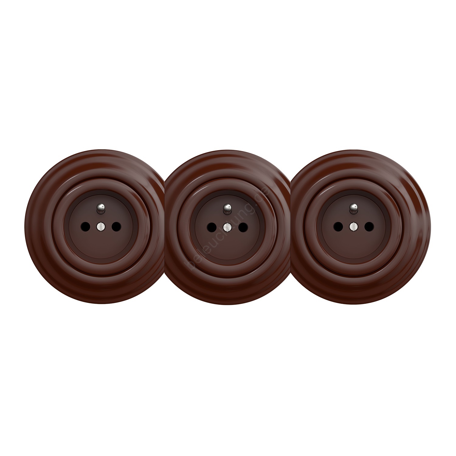 Kliklap - Dreifach-Retro-Steckdose mit Rahmen, 230V, braun