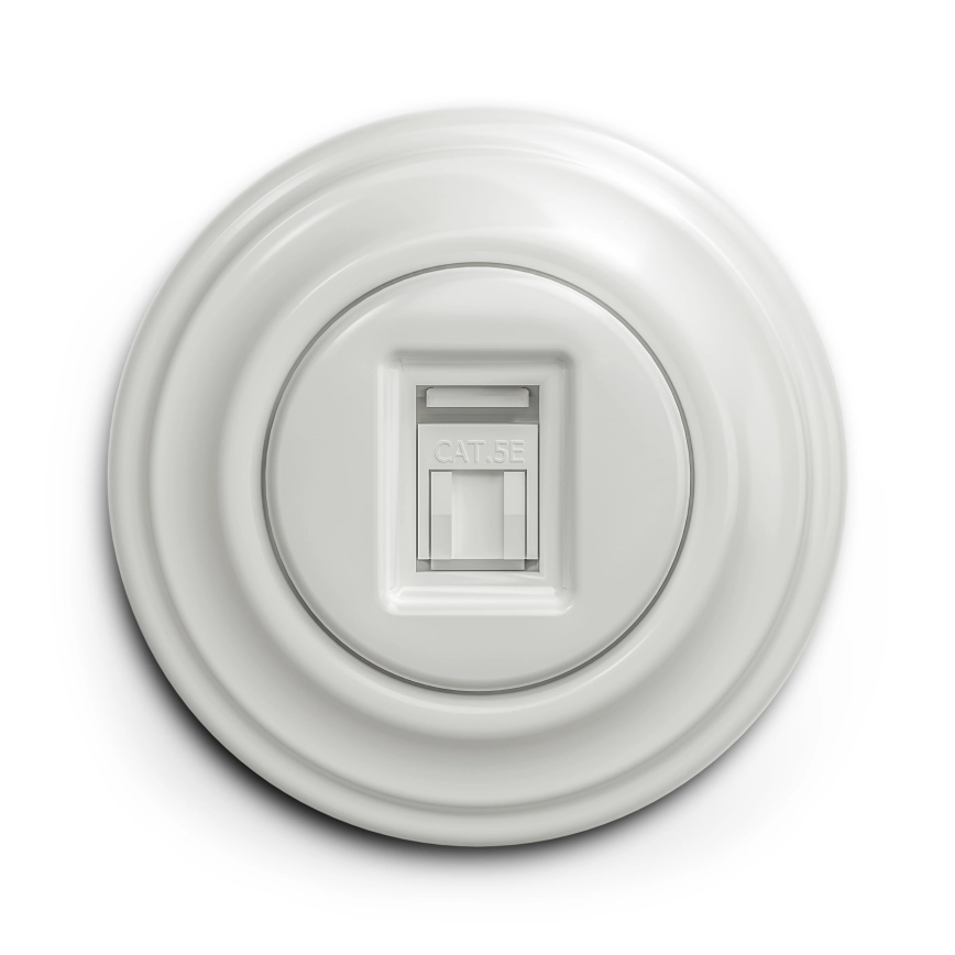 Kliklap - Retro-Netzwerkdose mit Rahmen aus Keramik, weiß