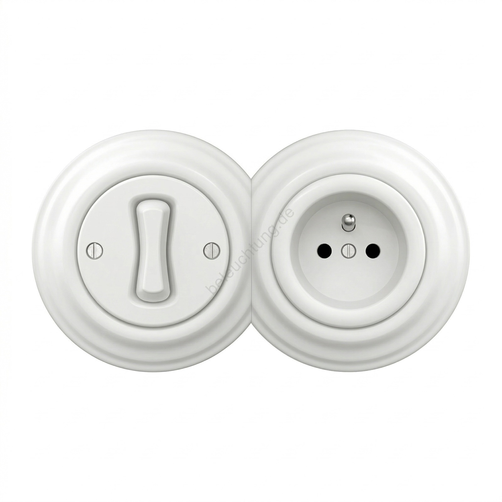 • Kliklap - Retro einpoliger Schalter Nr. 1 und Steckdose 230V mit Rahmen, keramikweiß