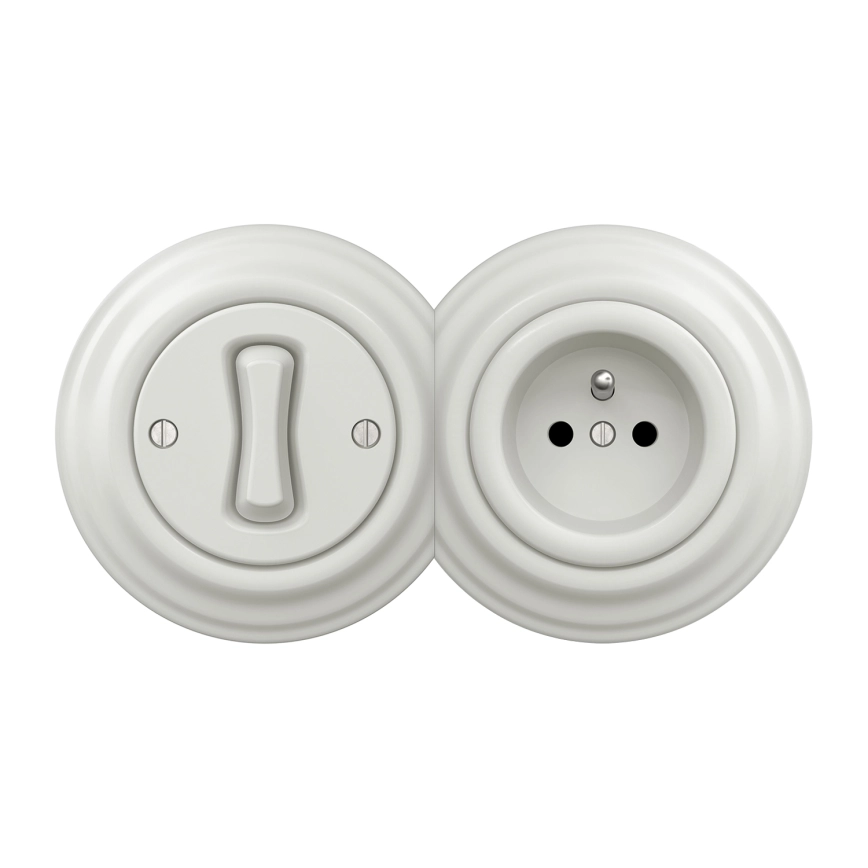 Kliklap - Retro einpoliger Schalter Nr. 1 und Steckdose 230V mit Rahmen, keramikweiß