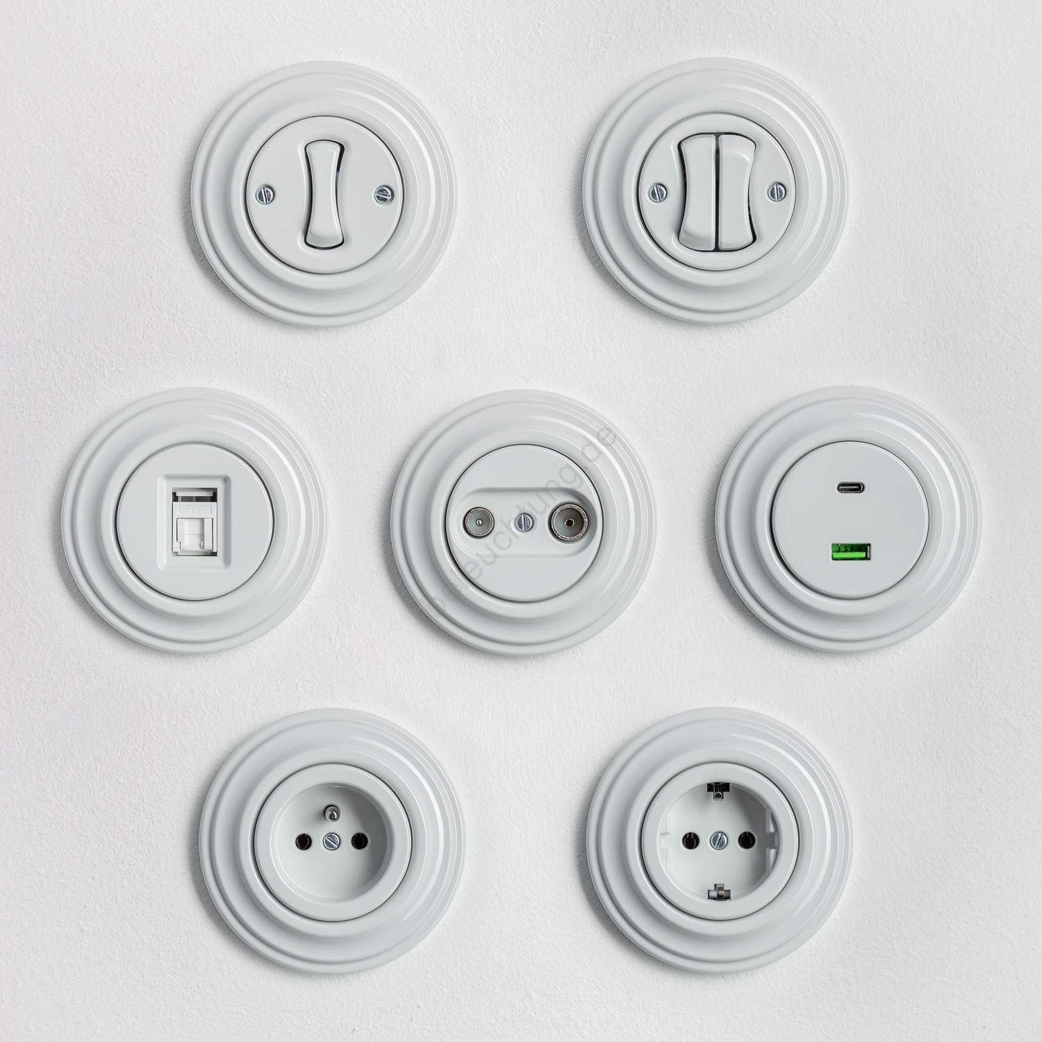 Elektroinstallation, Elektrowaren, Kliklap, Marken, Rahmen, Schalter, Dimmer und Rahmen, Vintage-Schalter