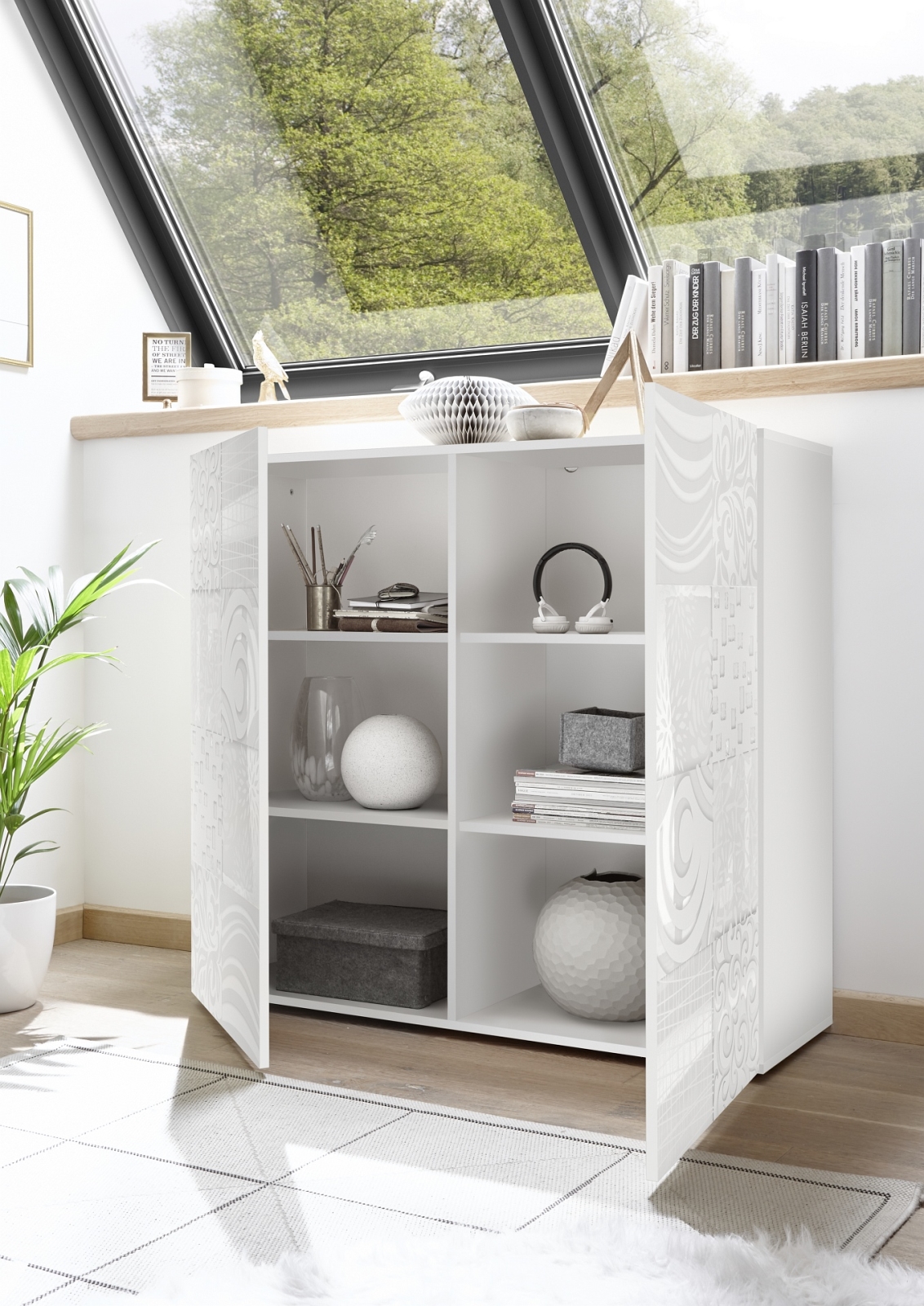 • Dank der Einlegeböden bietet sie großzügigen Stauraum zur Organisation Ihrer Alltagsgegenstände.