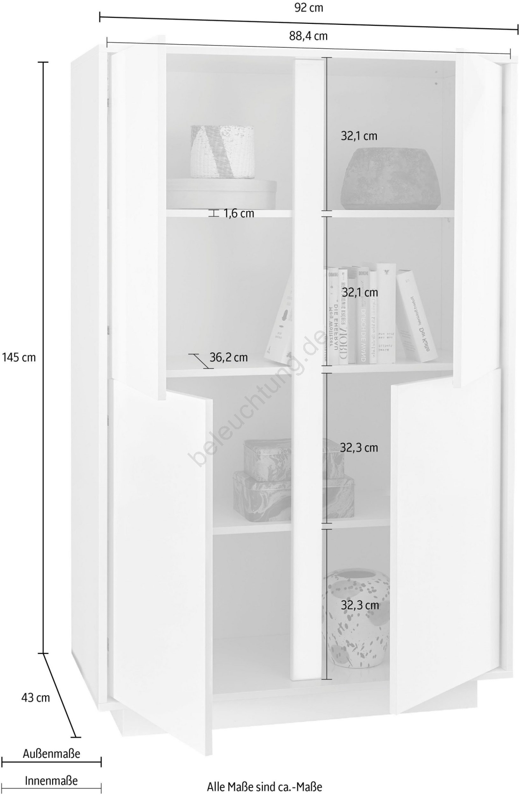 • Die Schränke bieten großzügigen Stauraum zur übersichtlichen Organisation Ihrer Alltagsgegenstände.