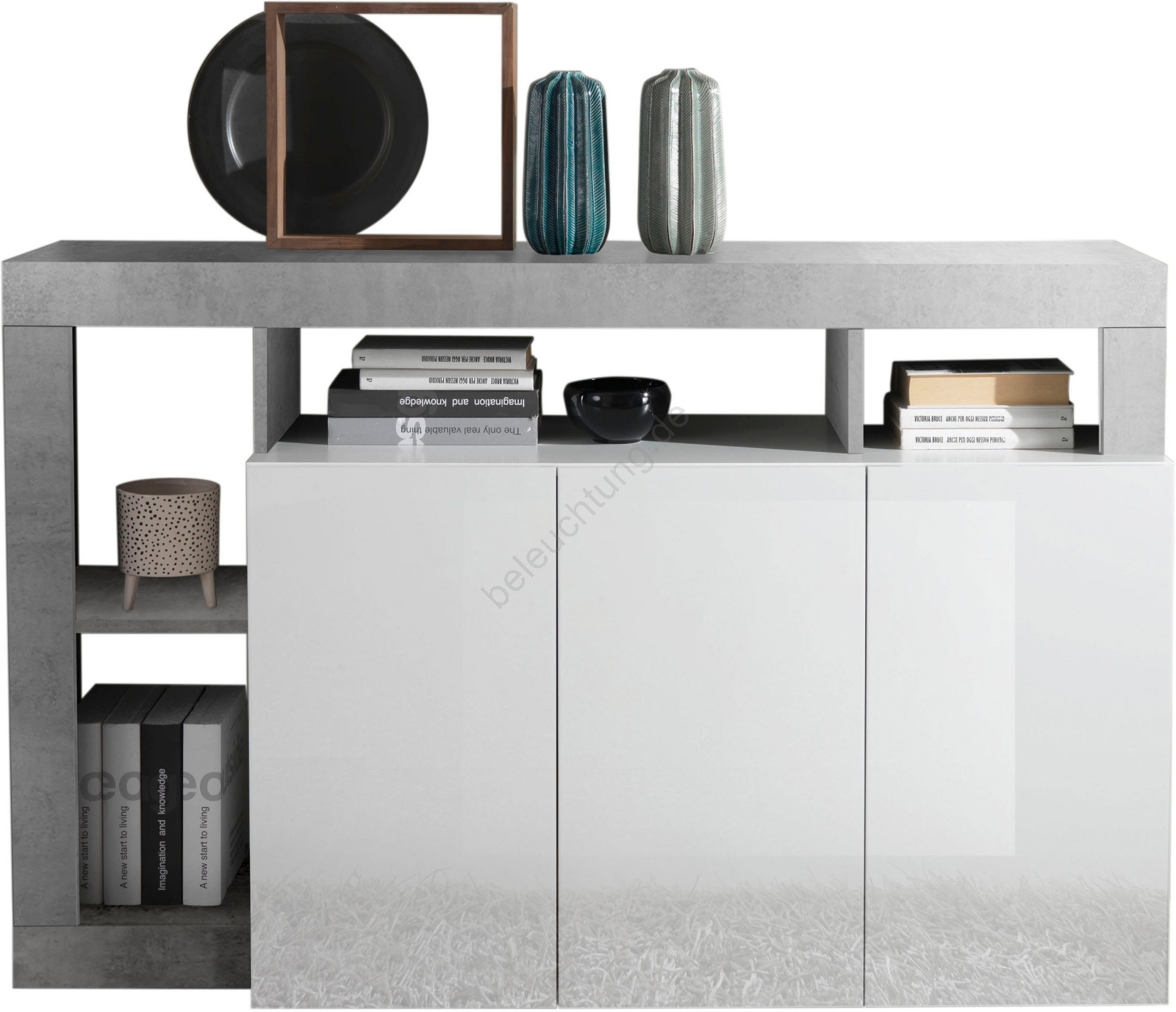 Kommode LENOR, weiß/grau in Betonoptik