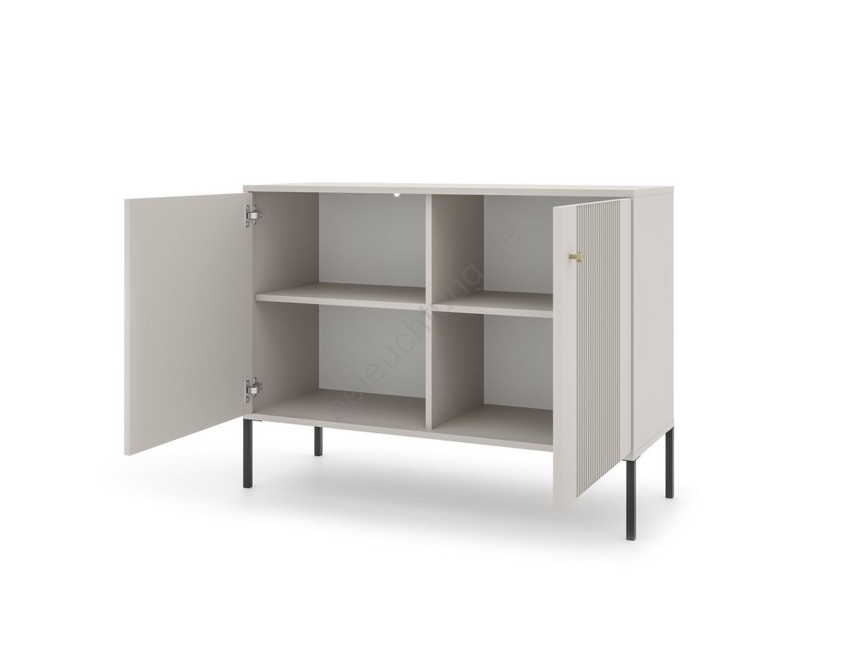 • Sie verfügt über zwei Fächer hinter Türen mit vertikaler Riffelung.