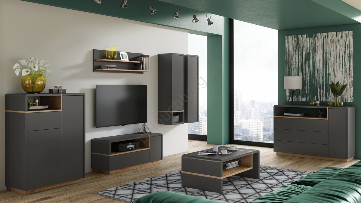 Kommode FRED mit Schublade, Anthrazit/Eiche Artisan