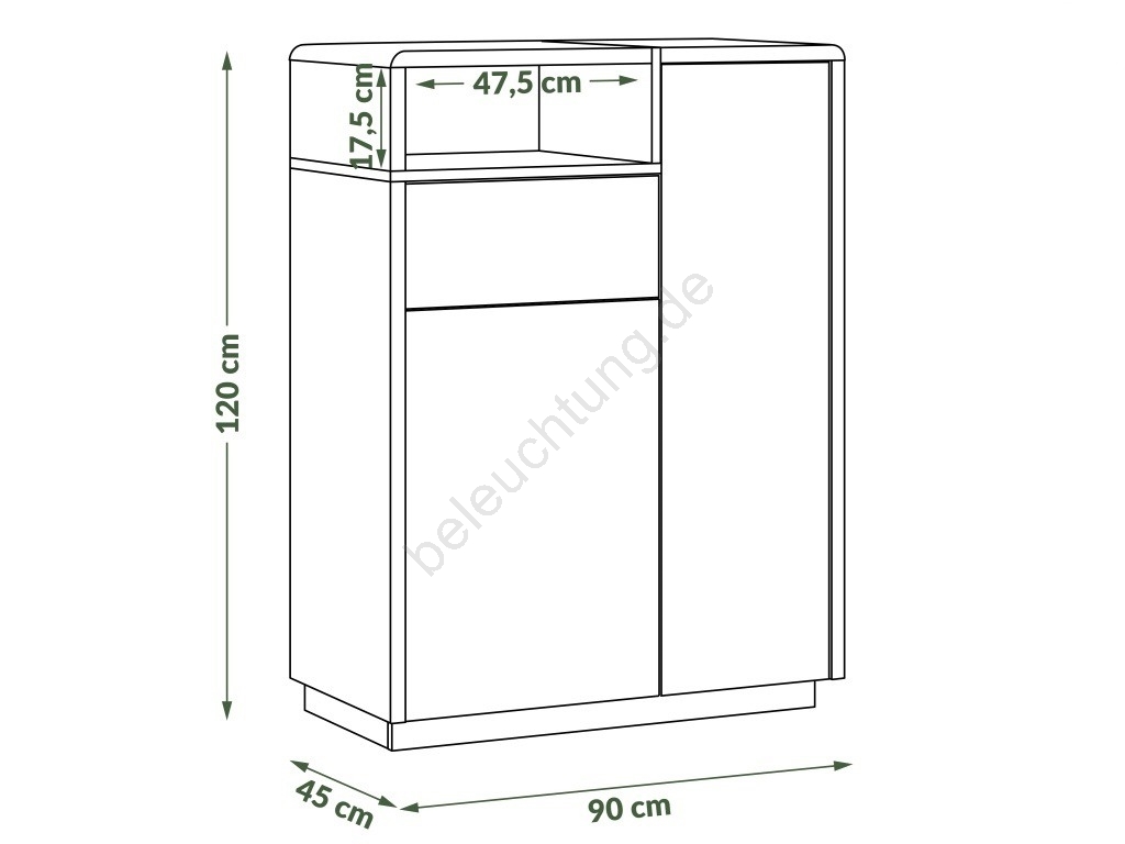 • Dank ihrer Maße eignet sie sich hervorragend für kleine Wohnzimmer und schafft einen funktionalen und gemütlichen Raum.