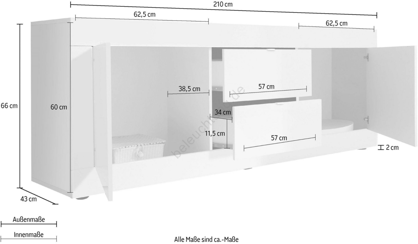 • Box Nr. 1: 6,7 x 218 x 46,6 cm (32 kg).