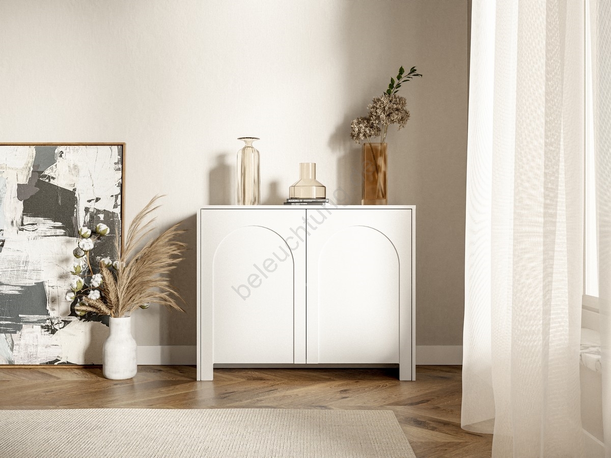 • Sie verfügt über zwei Türen, die jeweils mit einem feinen, gewölbten Muster für eine raffinierte Optik verziert sind.