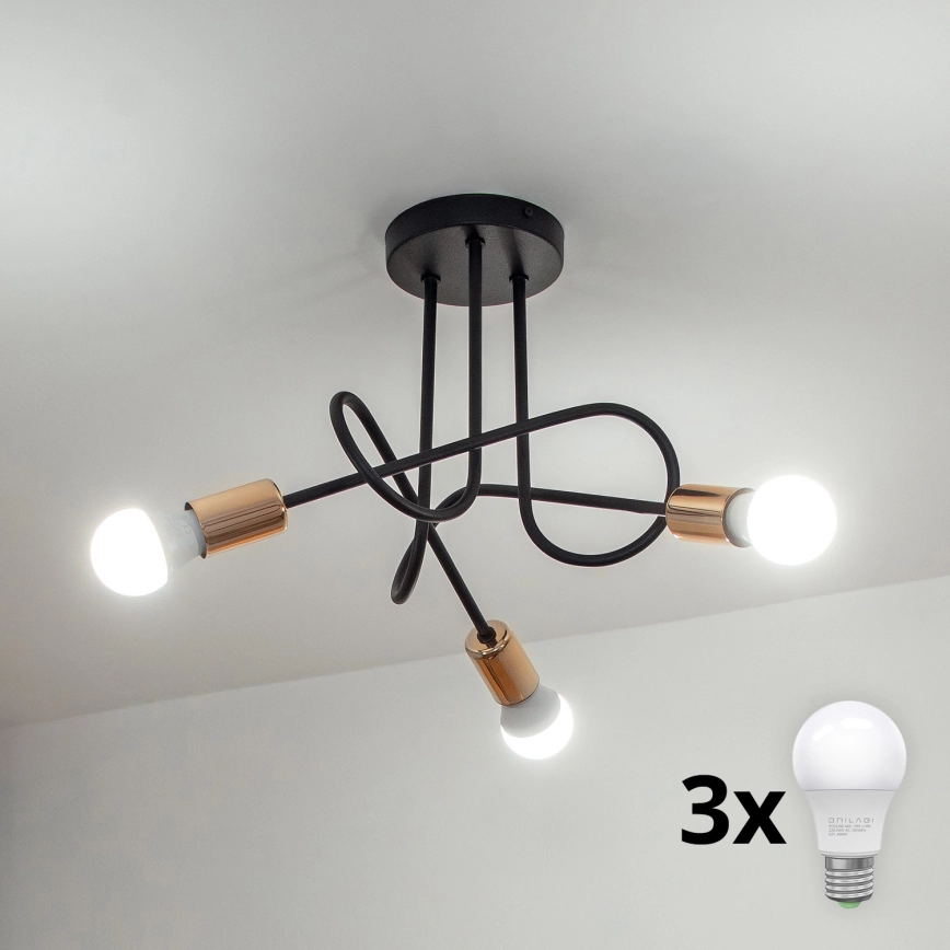 LED-Anbau-Deckenleuchte OXFORD 3xE27/15W/230V schwarz