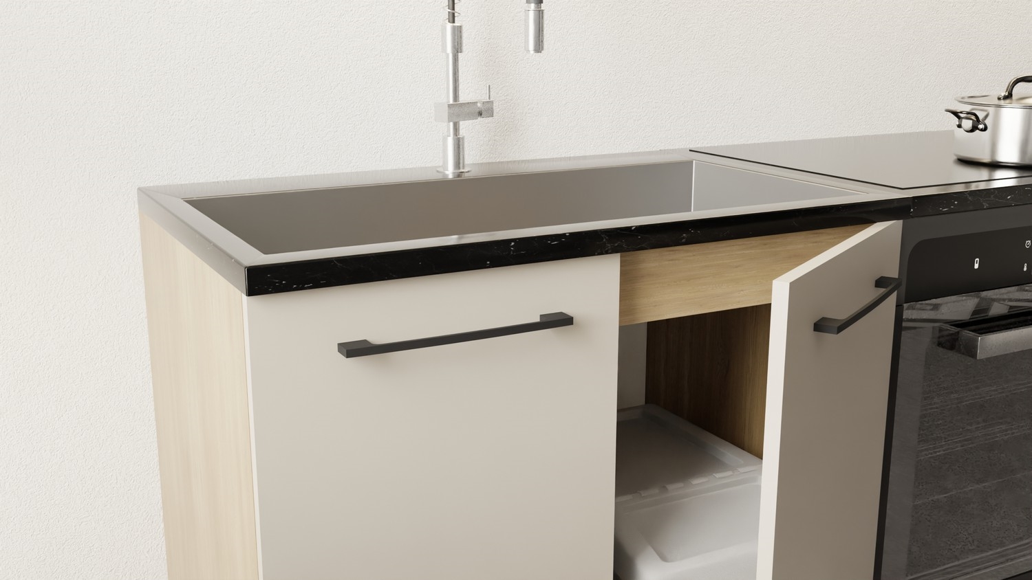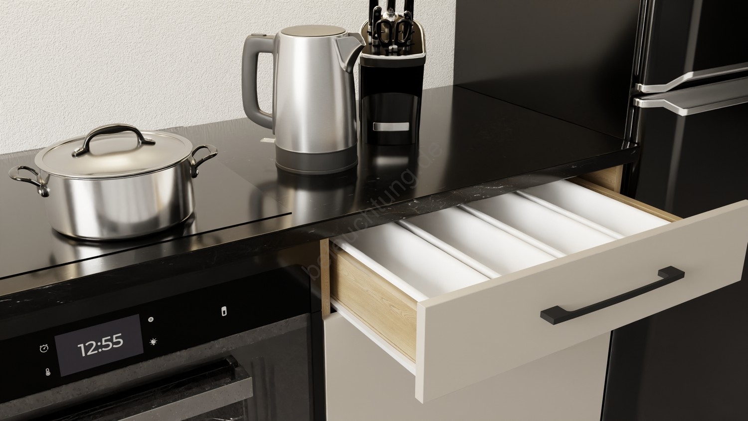 • Die praktische Küchenzeile bietet Ihnen großzügigen, durchdacht unterteilten Stauraum.