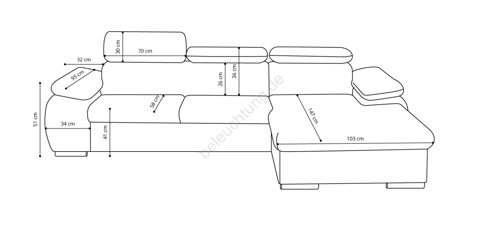 • Das Sofa bietet 3 verstellbare Kopfstützen.