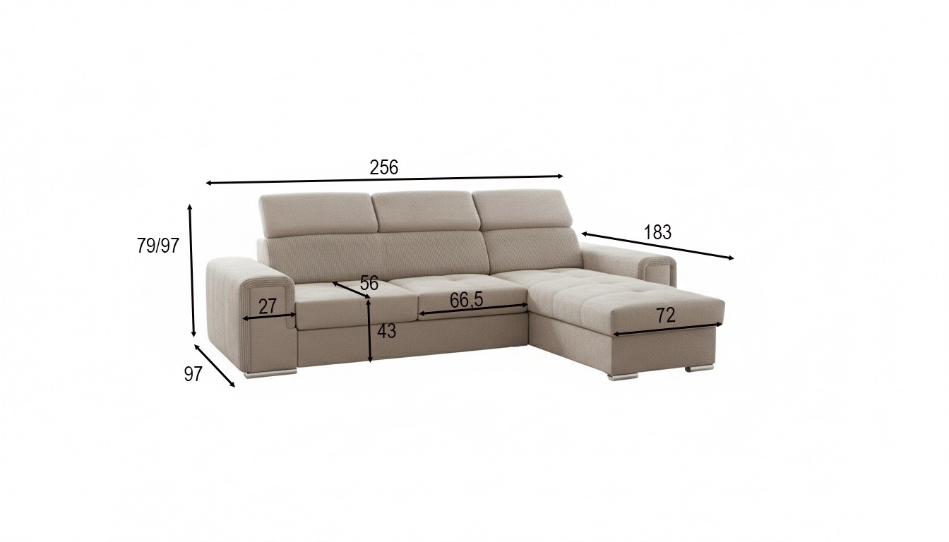 • Universelles Ecksofa SALVADA in L-Form mit Schlaffunktion und Stauraum, Beige