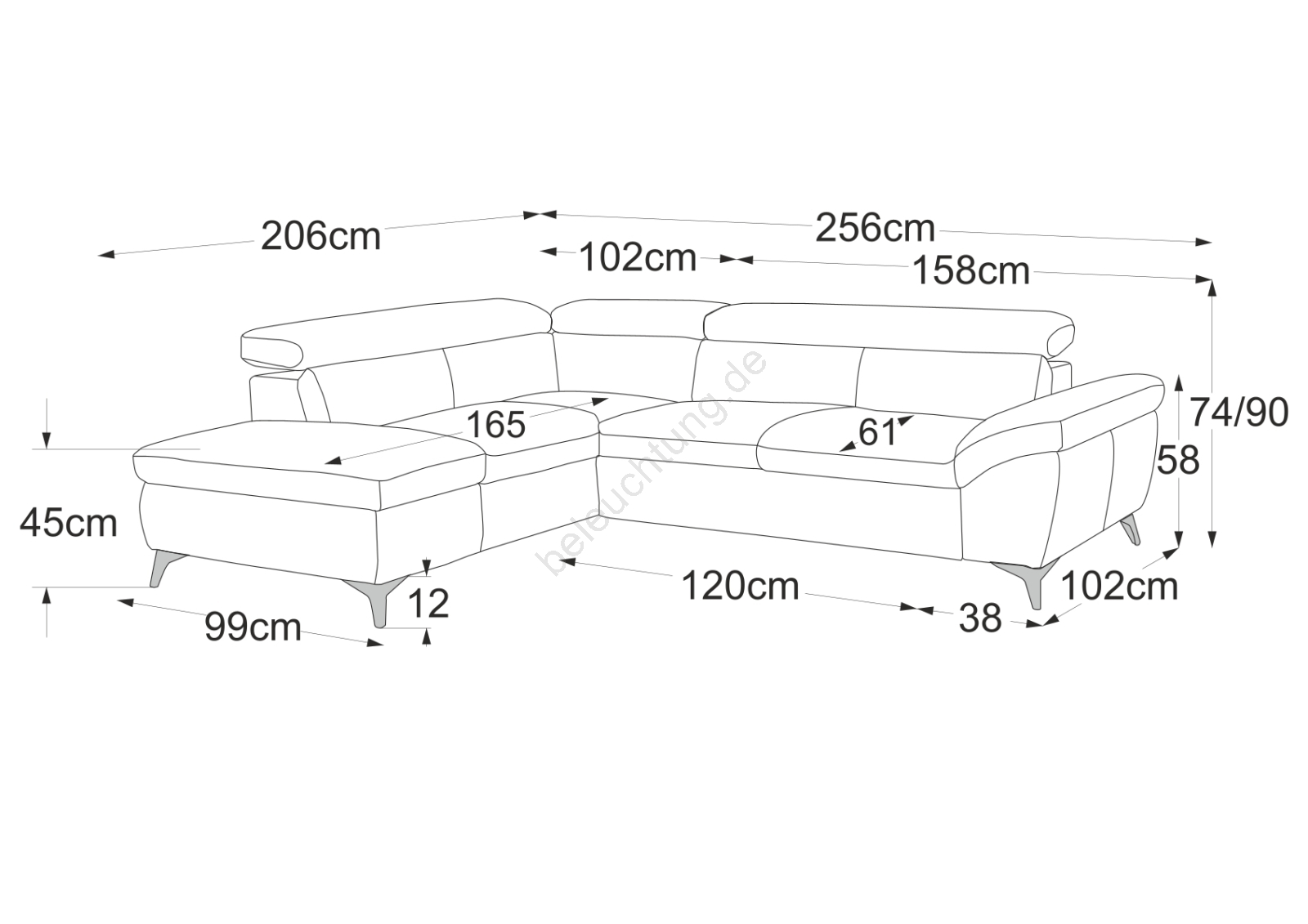 • 12 cm hohe Metallfüße verleihen ein modernes Aussehen und sorgen für Stabilität.
