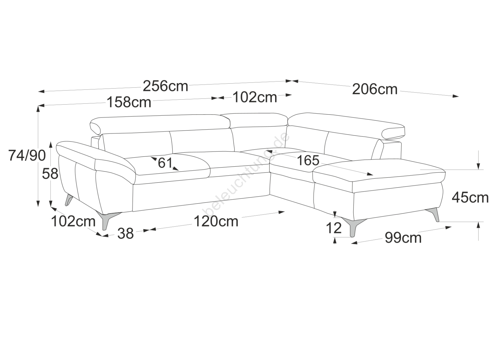 • Ausziehbare Eckledergarnitur in L-Form SALERNO II, rechts, grau