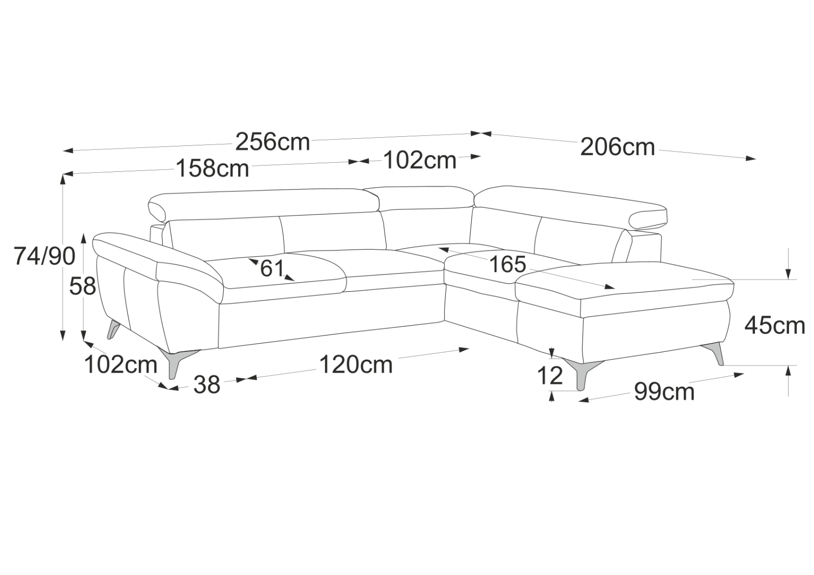 • 12 cm hohe Metallfüße verleihen ein modernes Aussehen und sorgen für Stabilität.