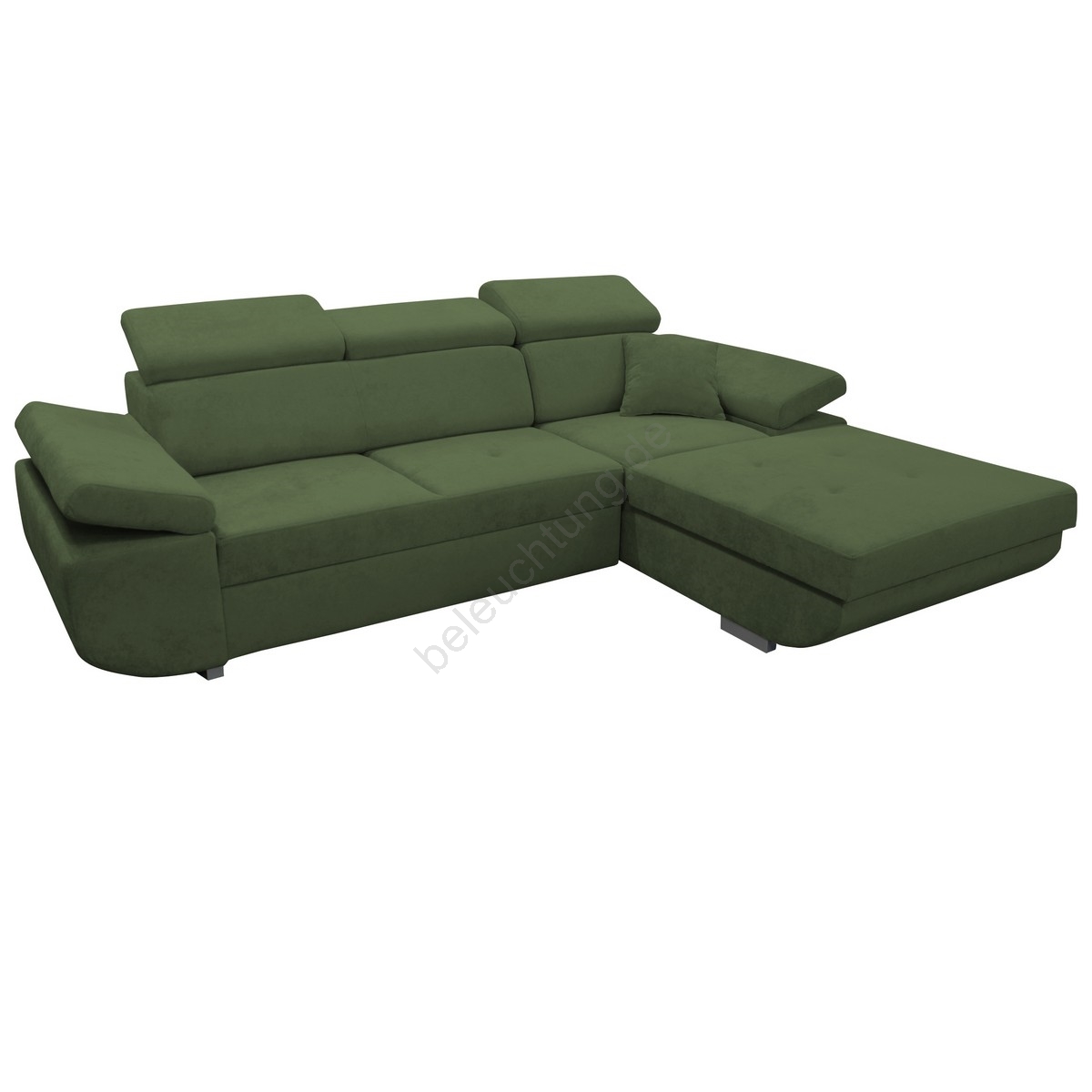 • Ausziehbare Eckgarnitur CASTELO in L-Form mit Stauraum, rechts, grün