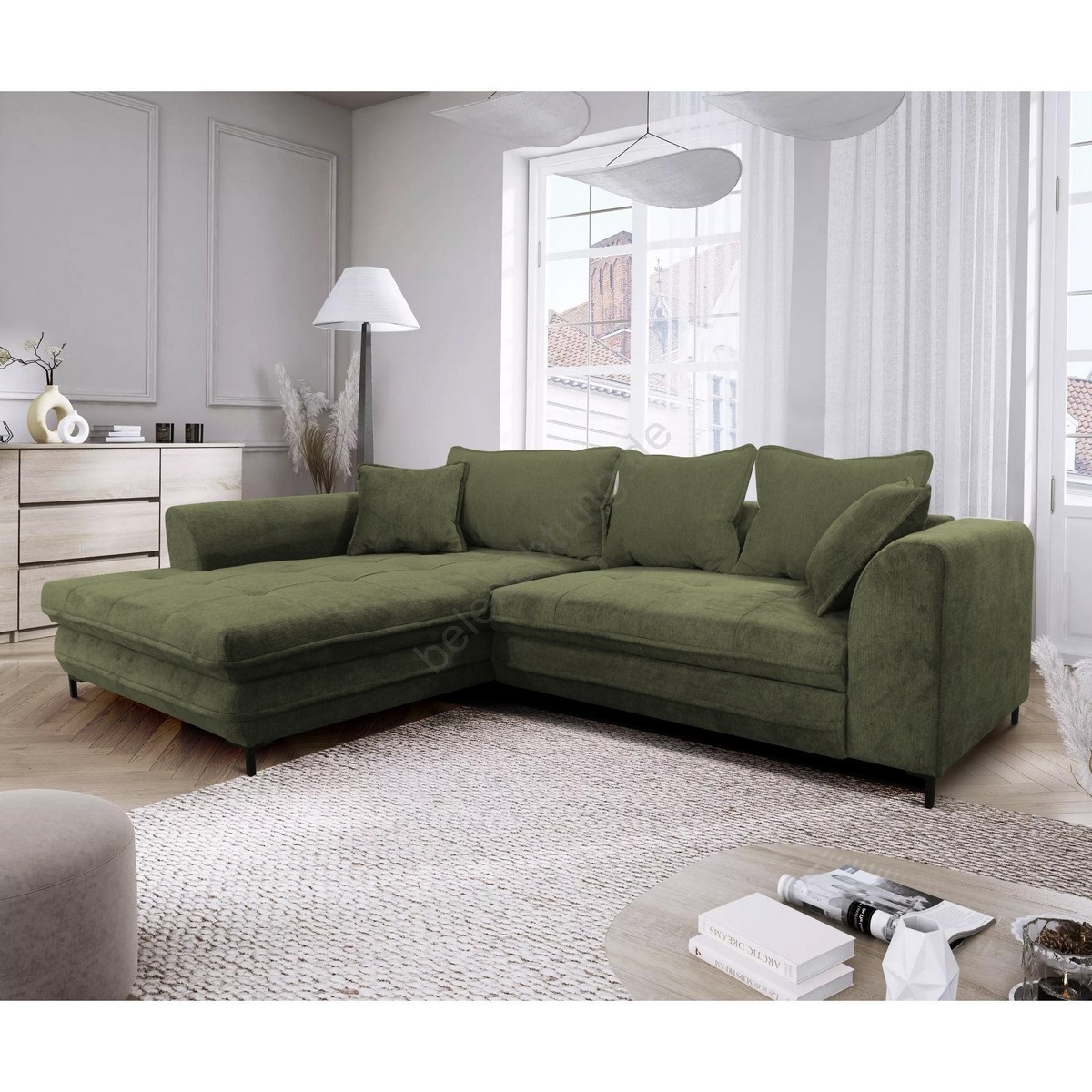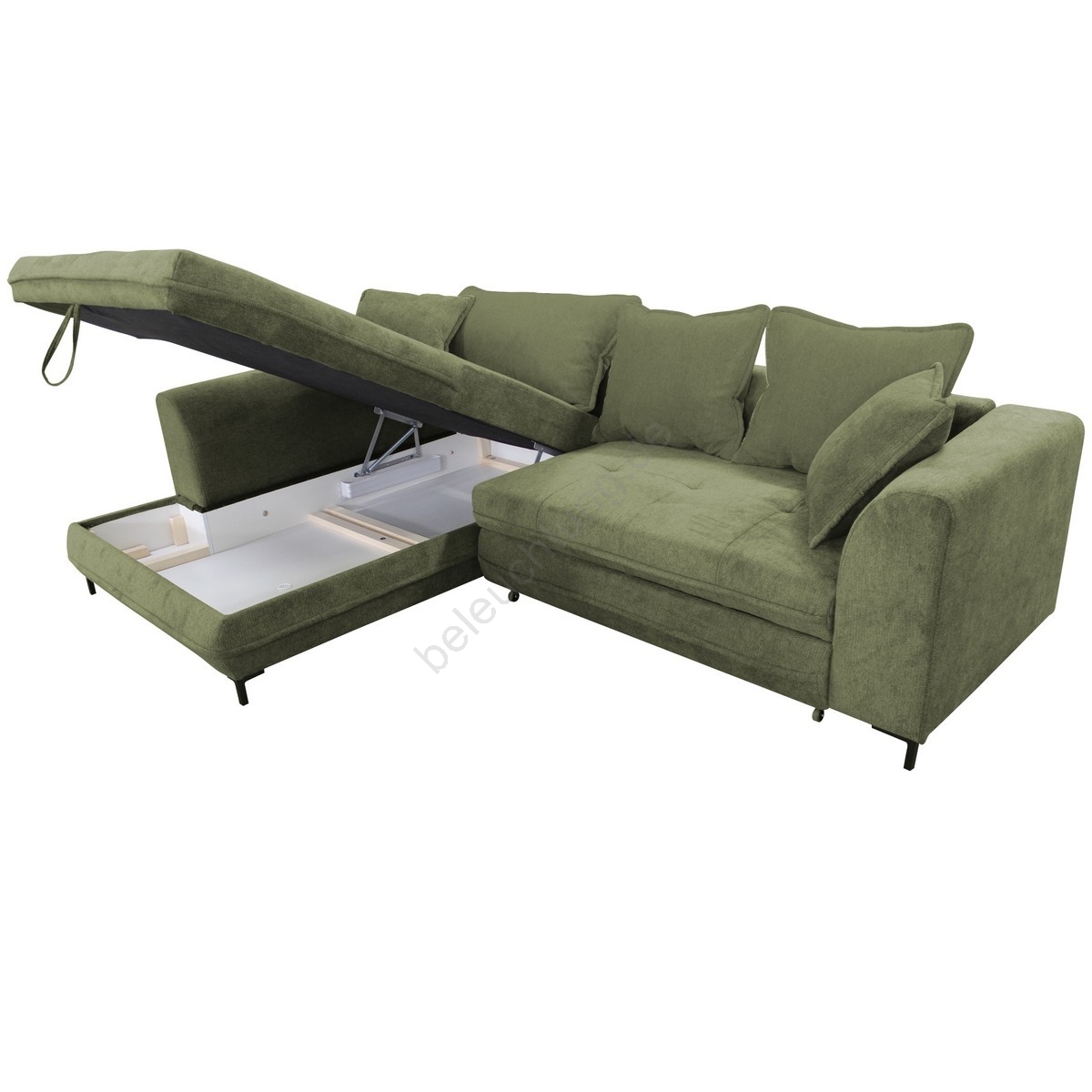 • Ausziehbares Ecksofa LAGOA in L-Form mit Stauraum, rechts, grün