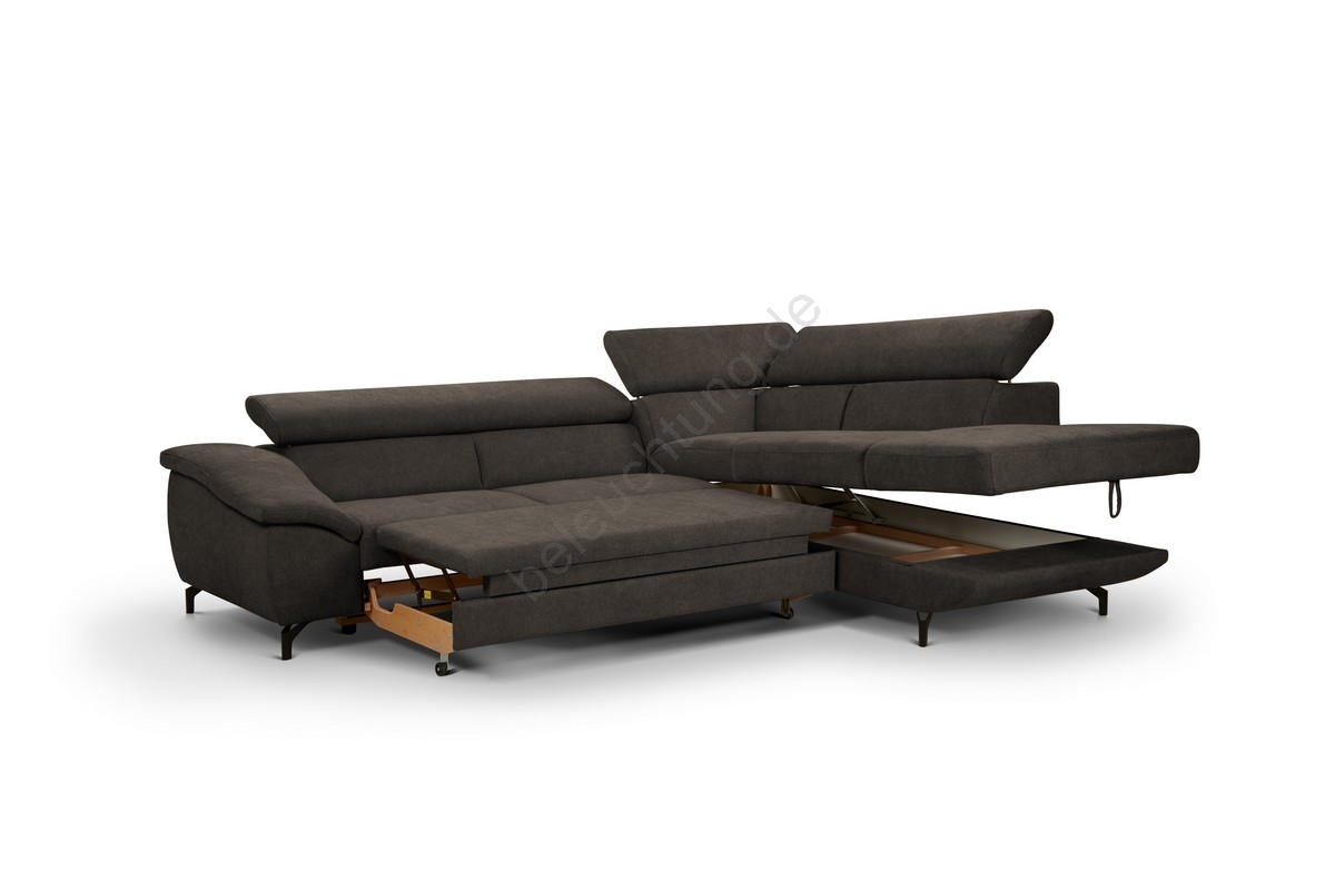 Eck-Schlafsofa mit Stauraum in L-Form BRESCIA, rechts, braun