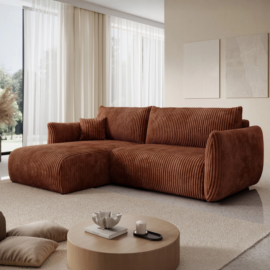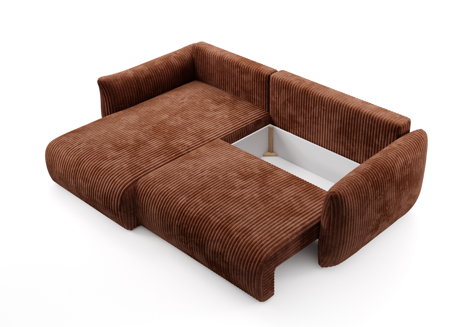 Universell ausziehbare Eckgarnitur FRIDA in L-Form mit Stauraum, Braun