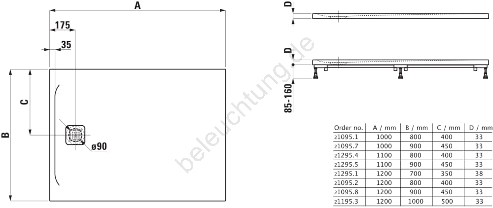 • Installationszubehör für die Duschwanne und den Siphon ist nicht im Lieferumfang enthalten.