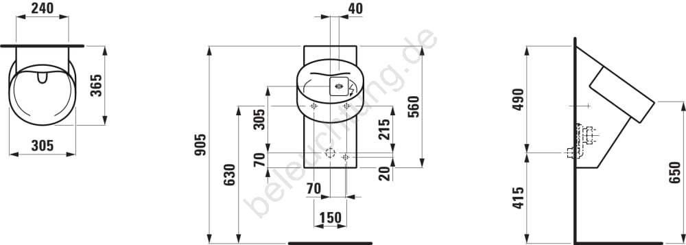 • Das Urinal ist randlos, wodurch Ablagerungsflächen für Schmutz und Bakterien vermieden werden.