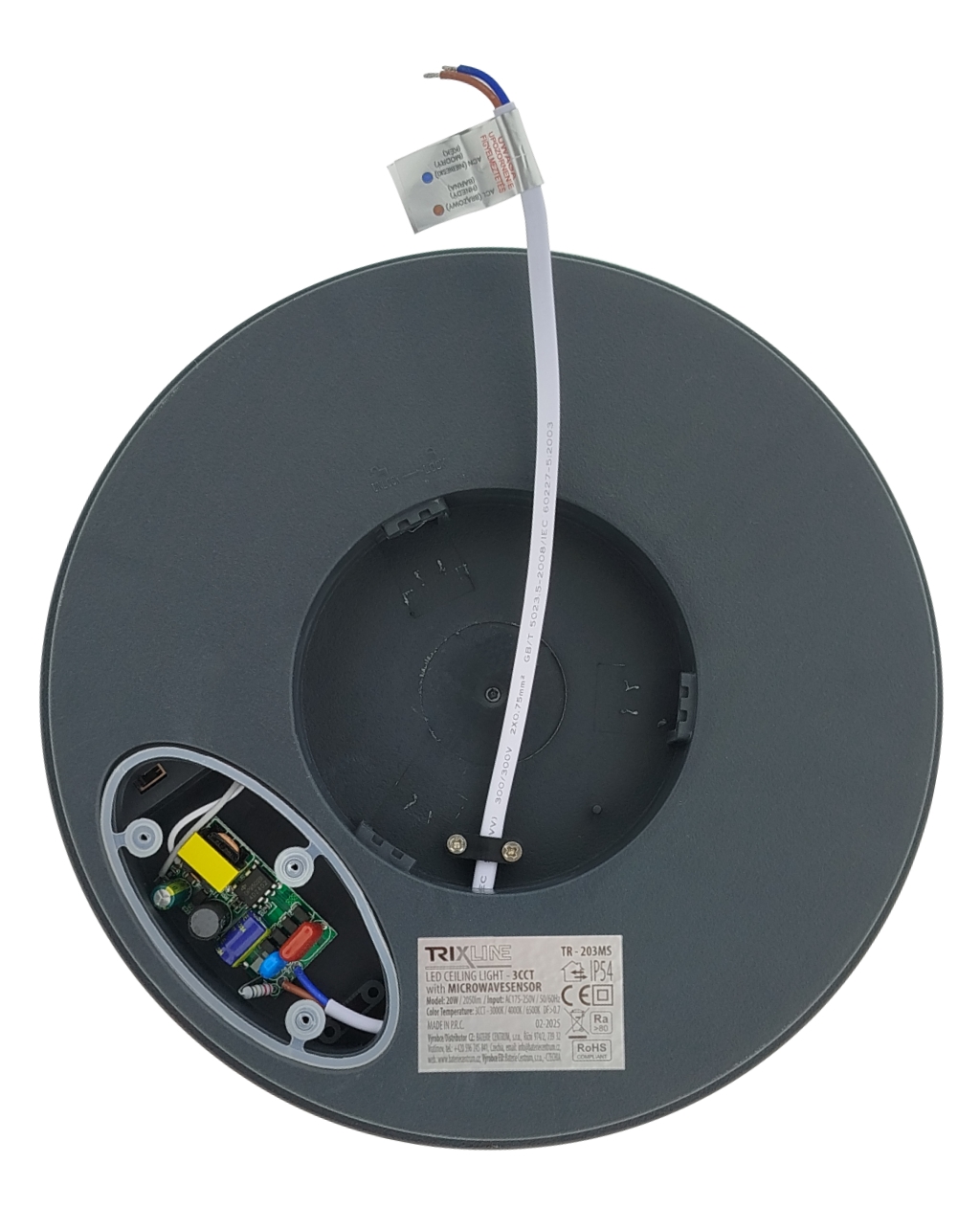• LED-Badezimmer-Deckenleuchte mit Bewegungsmelder – 20 W, 230 V, einstellbare Farbtemperatur (3000/4000/6500 K), Ø 23 cm, IP54, Anthrazit
