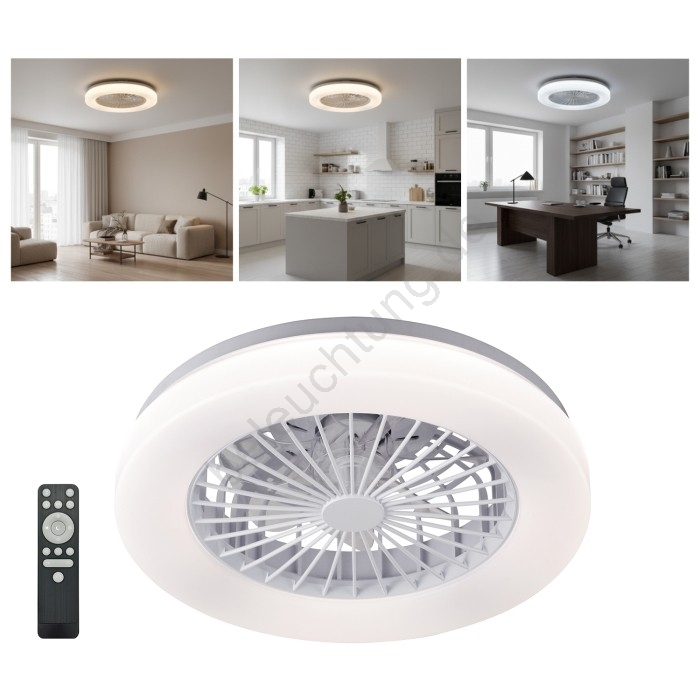 LED dimmbare Deckenleuchte mit Ventilator VENTELUX LED/24W/230V 3000/4000/6500K Ø 45 cm weiß + Fernbedienung ist eine moderne Beleuchtungslösung für Ihr Zuhause. Die Leuchte nutzt die Vorzüge von Intergriertes LED Modul, die für eine effektive und energiesparende Beleuchtung sorgt. Das Design und die hohe Qualität der Leuchte sorgen für eine lange Lebensdauer und Zufriedenheit mit Ihrer Beleuchtung.