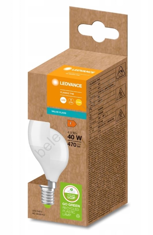 • LED-Glühbirne aus recyceltem Kunststoff P45 E14/4,9W/230V 2700K - Ledvance