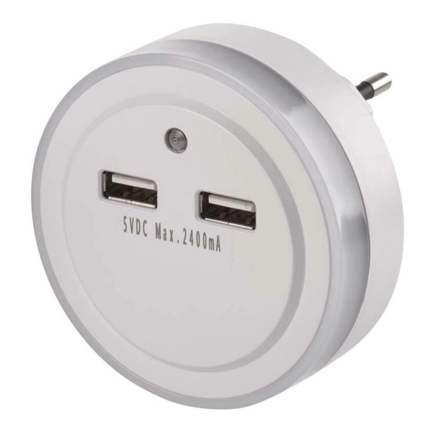 LED-Nachtlicht für Steckdose mit Fotosensor + 2xUSB 3xLED/0,3W/230V