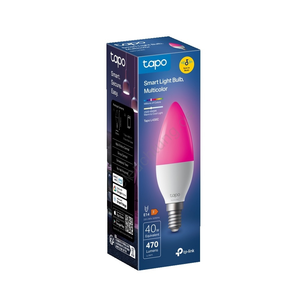 • Die intelligente LED-Lampe TP-Link Tapo L430C ist eine mehrfarbige Lampe mit E14-Fassung, die über Wi‑Fi per Tapo-App gesteuert wird.