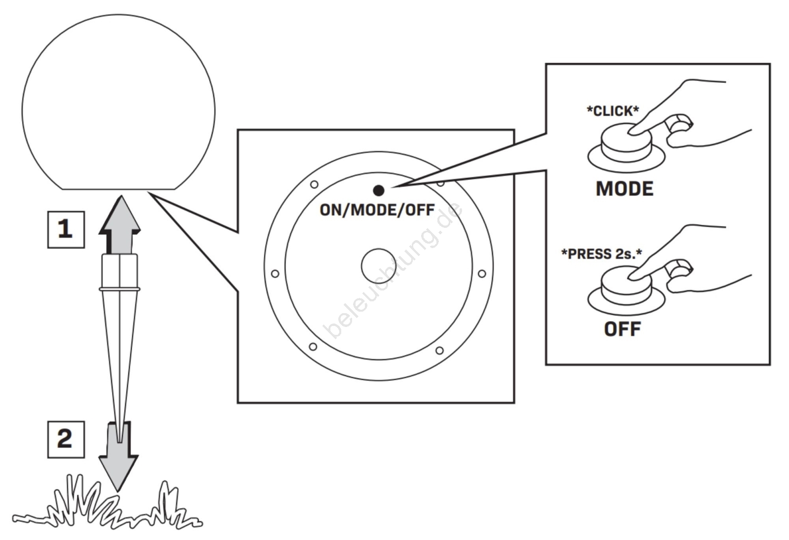 • Praktische Solarlampe mit Umschaltmöglichkeit zwischen mehrfarbigem (RGB) und weißem Licht.
