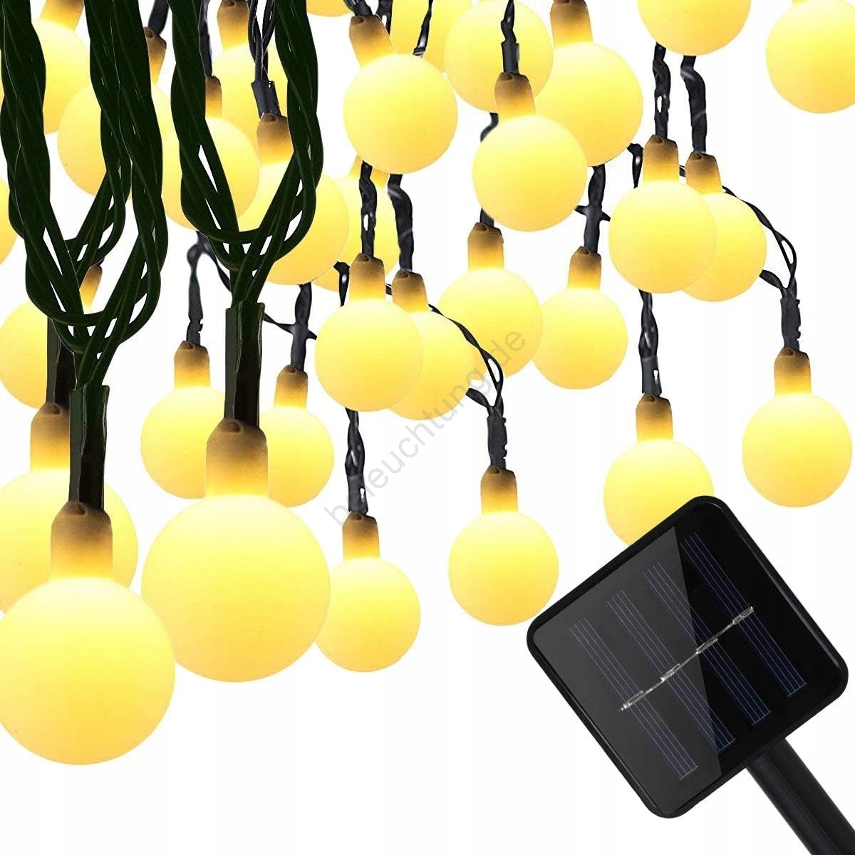 LED-Solar-Lichterkette, 50 LEDs, 8 Funktionen, 500 mAh Akku, 9,5 m, IP67, warmweiß