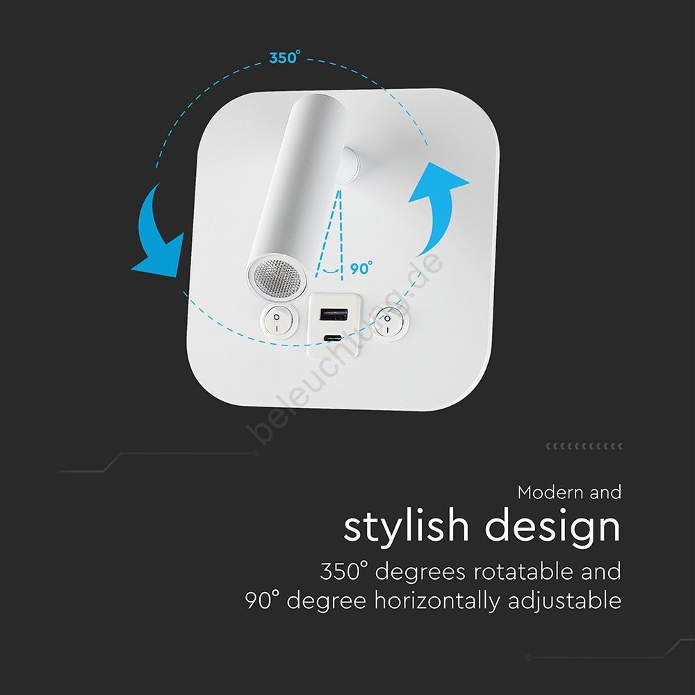 • LED-Wandspot mit USB-Anschluss LED/8W/230V 3000K weiß