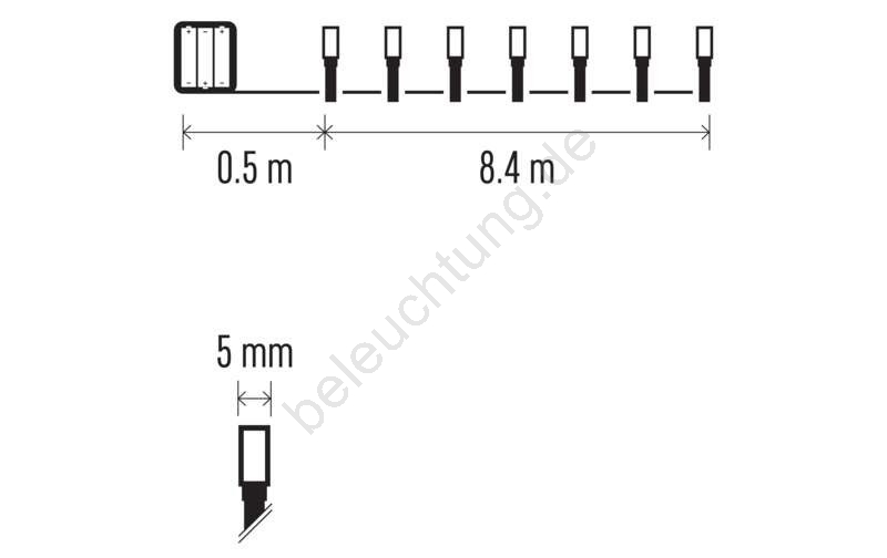 • Länge des beleuchteten Kabels: 8.4 m.