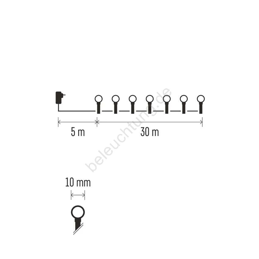 LED-Weihnachtslichterkette, 300 LEDs, 8 Funktionen, 35 m, IP44, warmweiß