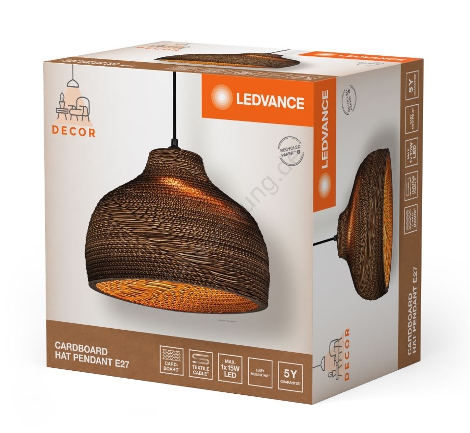 Ledvance - Hängeleuchte DECOR CARDBOARD 1xE27/15W/230V d 36 cm zeichnet sich durch schönes und funktionales Design aus. Eine Glühbirne mit E27 Sockel ist für die Leuchte geeignet. Hier, können Sie andere Glühlampen zu vorteilhaften Preisen kaufen. Sie erhalten eine attraktive Ergänzung für Ihr Zuhause.