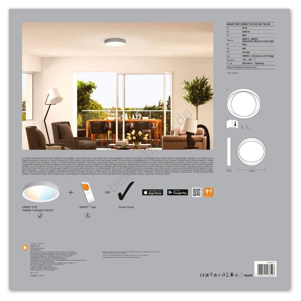 • Ledvance - LED-Dimmer-Deckenleuchte SMART+ EYE LED/32W/230V 3,000K-6,500K Wi-Fi
