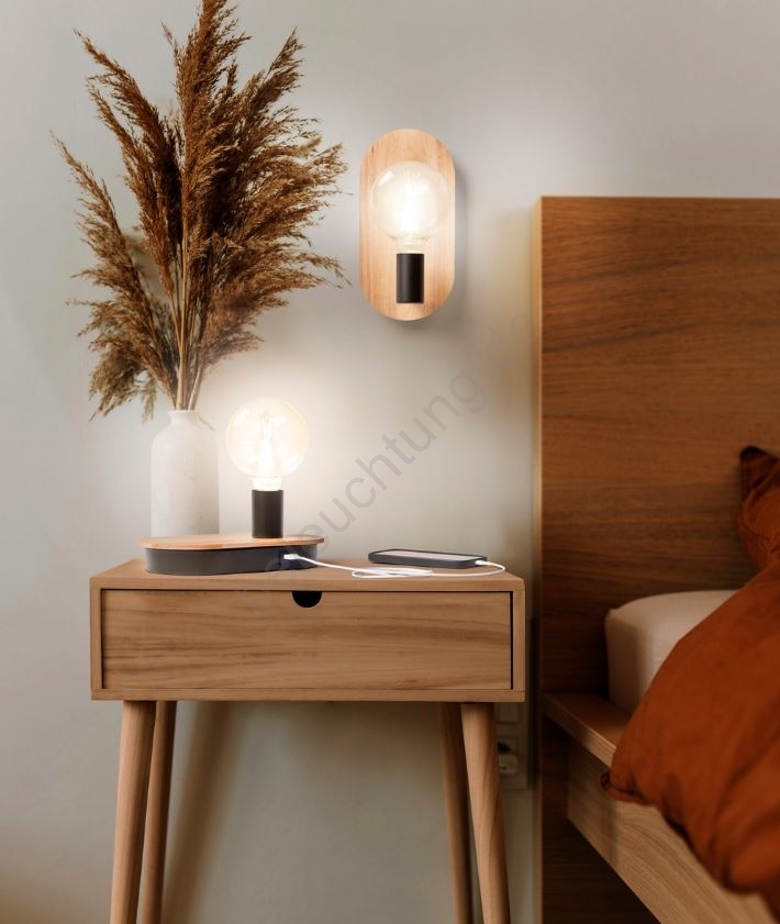 Ledvance - Touch-Tischlampe mit USB-Anschluss DECOR WOOD 1xE27/8W/230V Gummibaum
