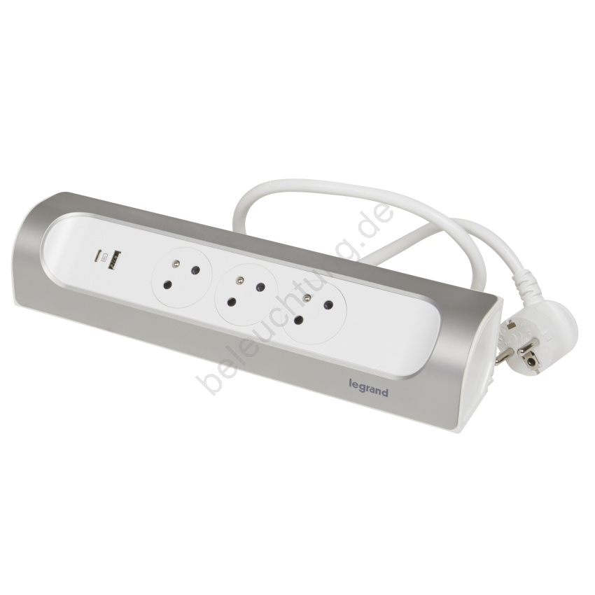 Legrand 049406 - Verlängerungskabel 3-fach Typ E + USB-A + USB-C 1 m silber/weiß