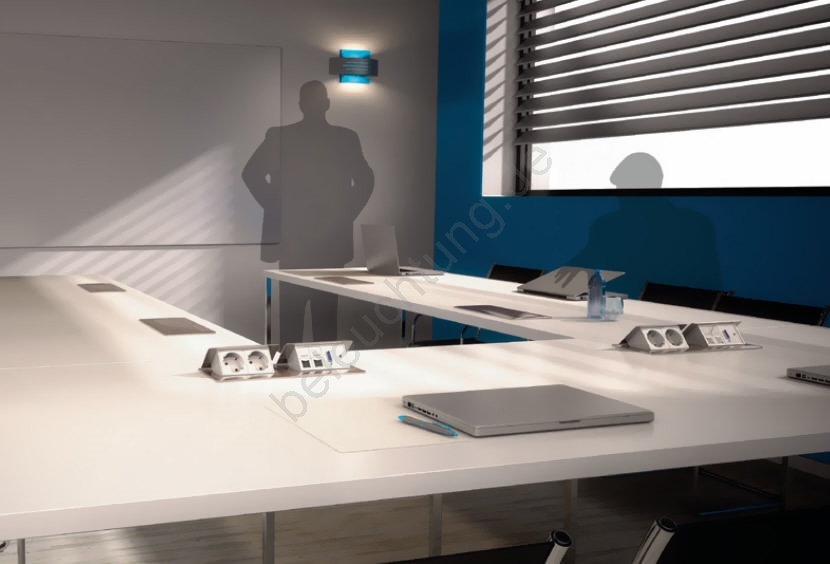 • Eingebaute Steckdosenbox für die Tischplatte.