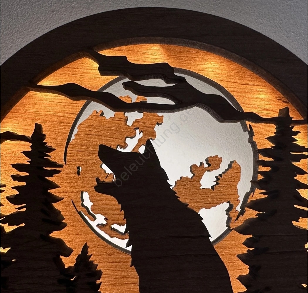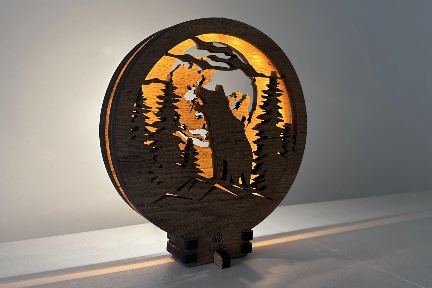 Li-Go 23574/DUB2 - dimmbare LED-Tischdekoration LED/12W/230V 20x22 cm Eiche/Wolf und Mond