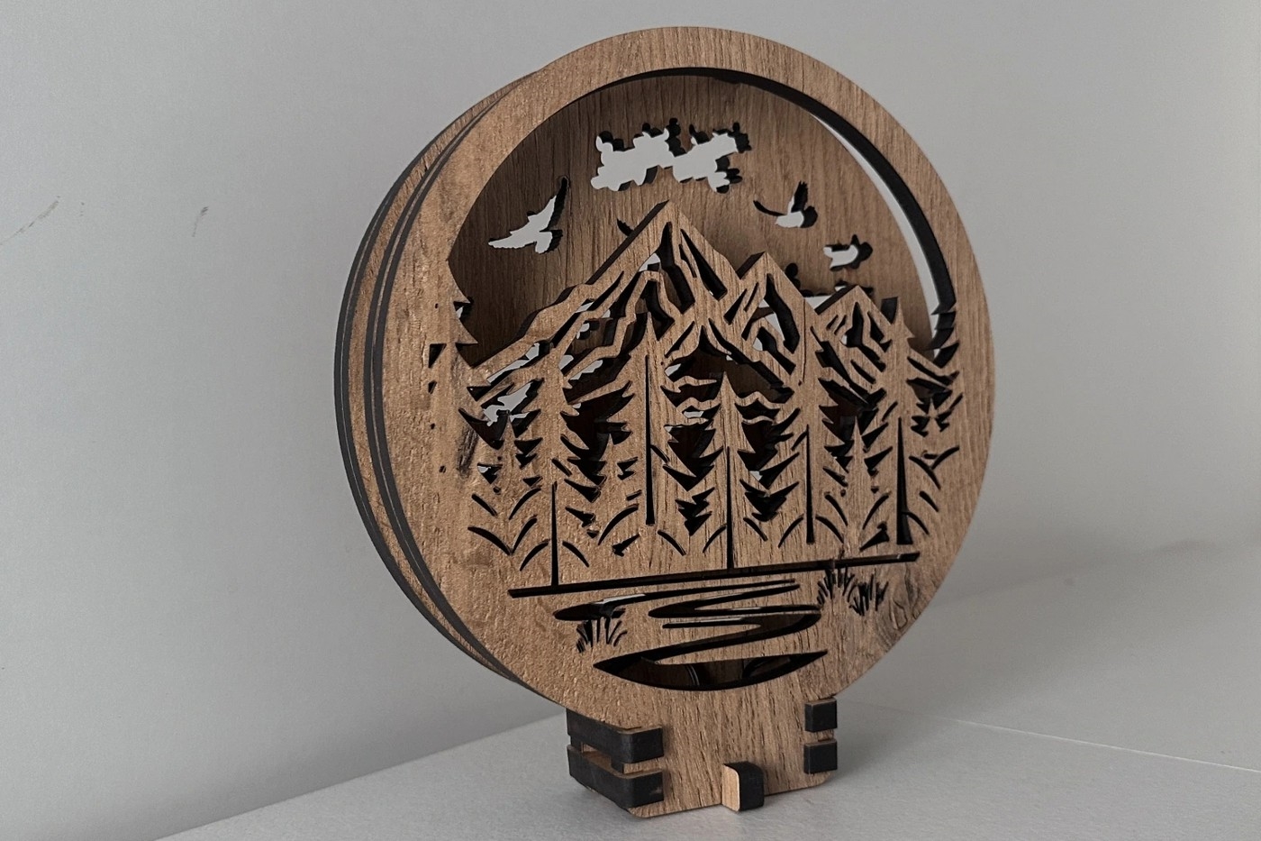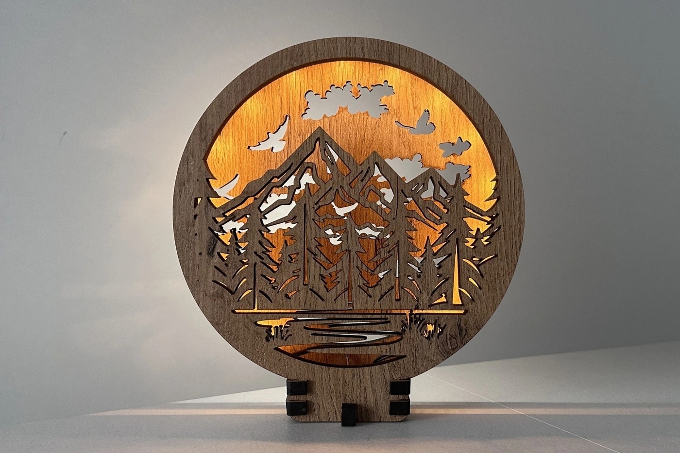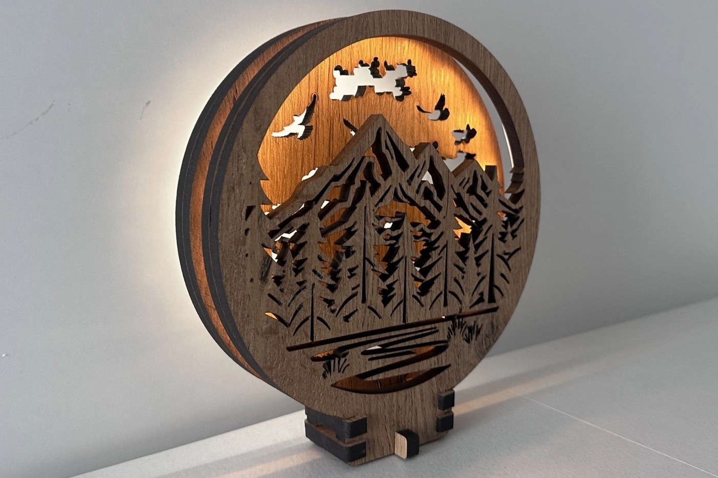 Li-Go 23583/DUB2 - LED-dimmbare Tischdekoration LED/12W/230V 20x22 cm Eiche/Berge und Wald