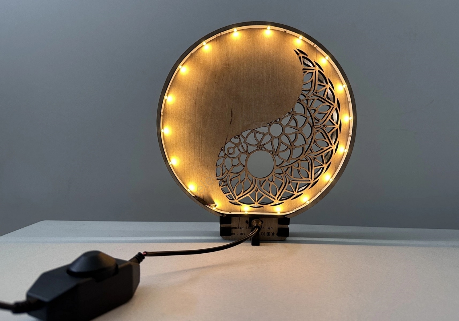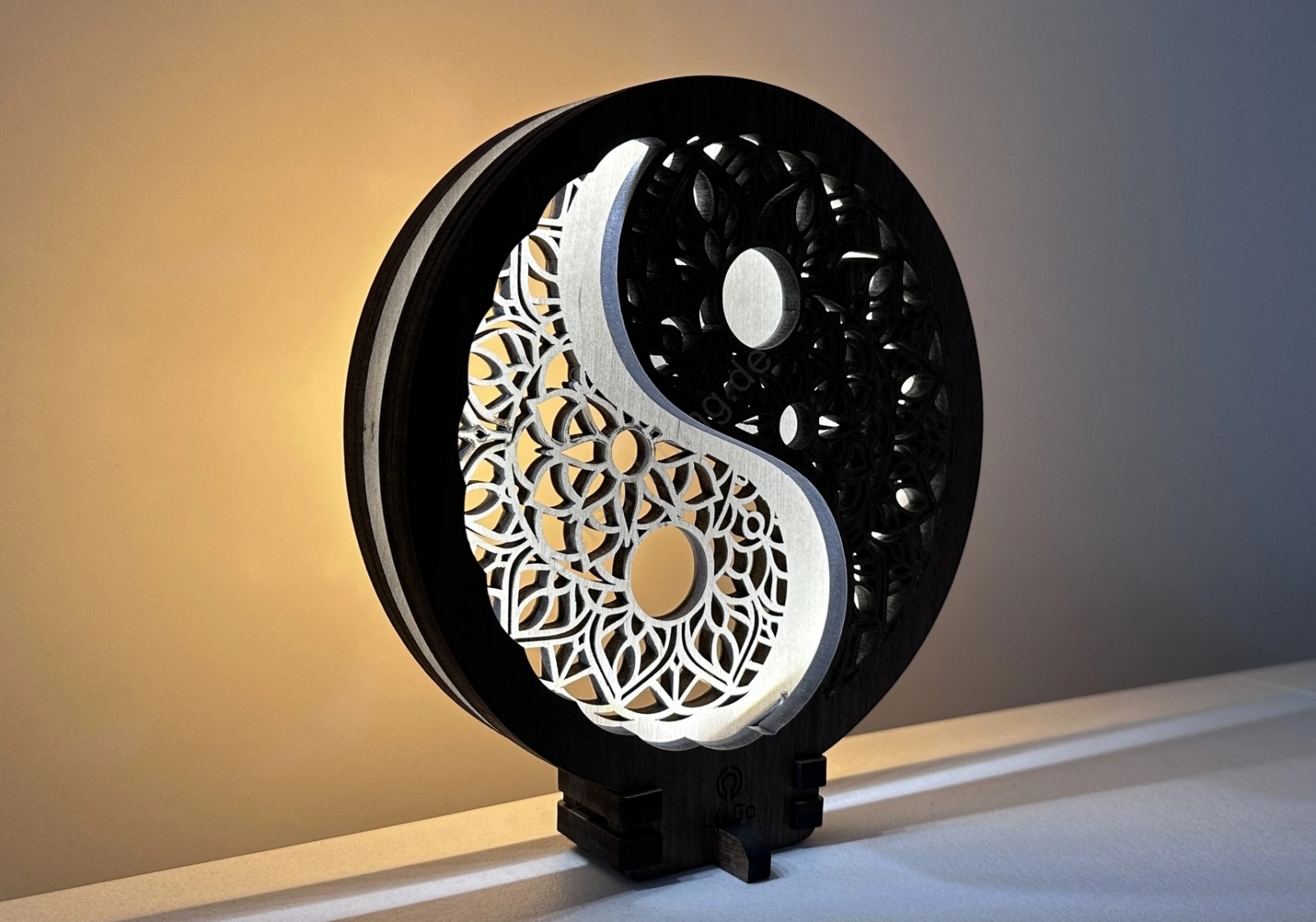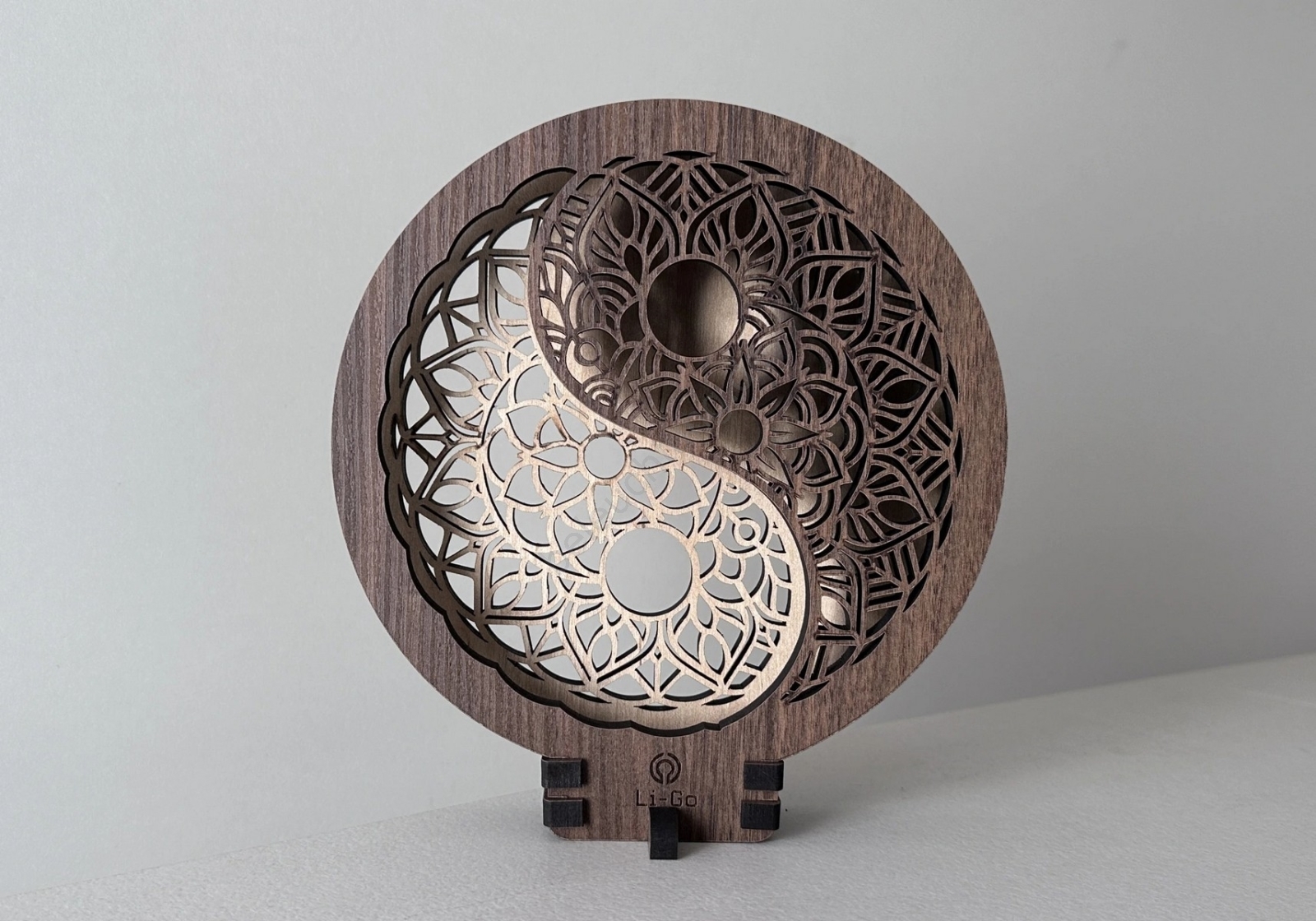 Li-Go 23607/O - Dimmbare LED-Tischdekoration LED/12W/230V 20x22 cm Nussbaum/Yin Yang