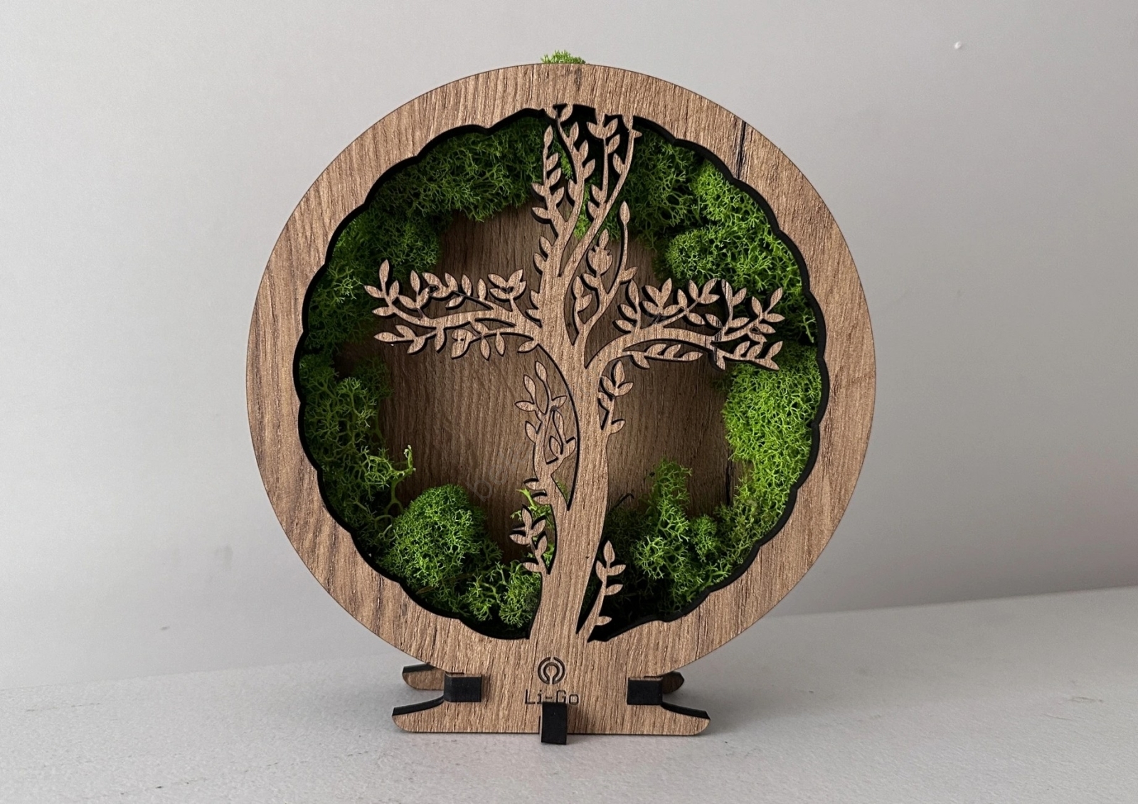 Li-Go 23622/DUB2 - Dimmbare LED-Tischdekoration LED/12W/230V 20x22 cm Eiche/Kreuz im Moos