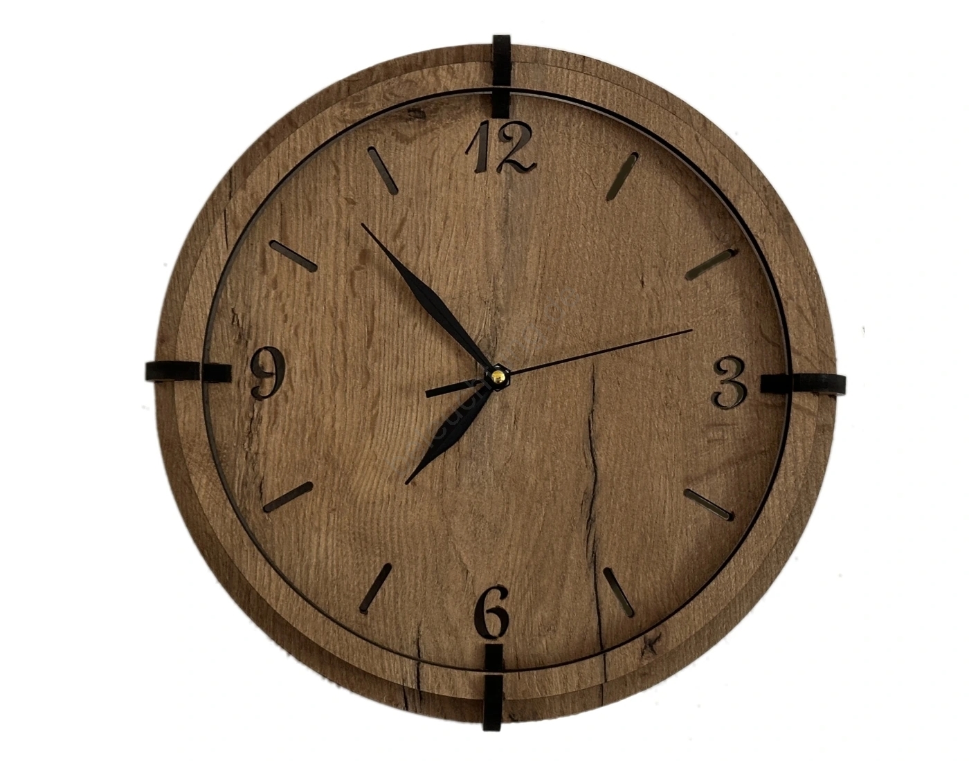 • Uhr aus Holz mit einzigartigem, geschnitztem Motiv.